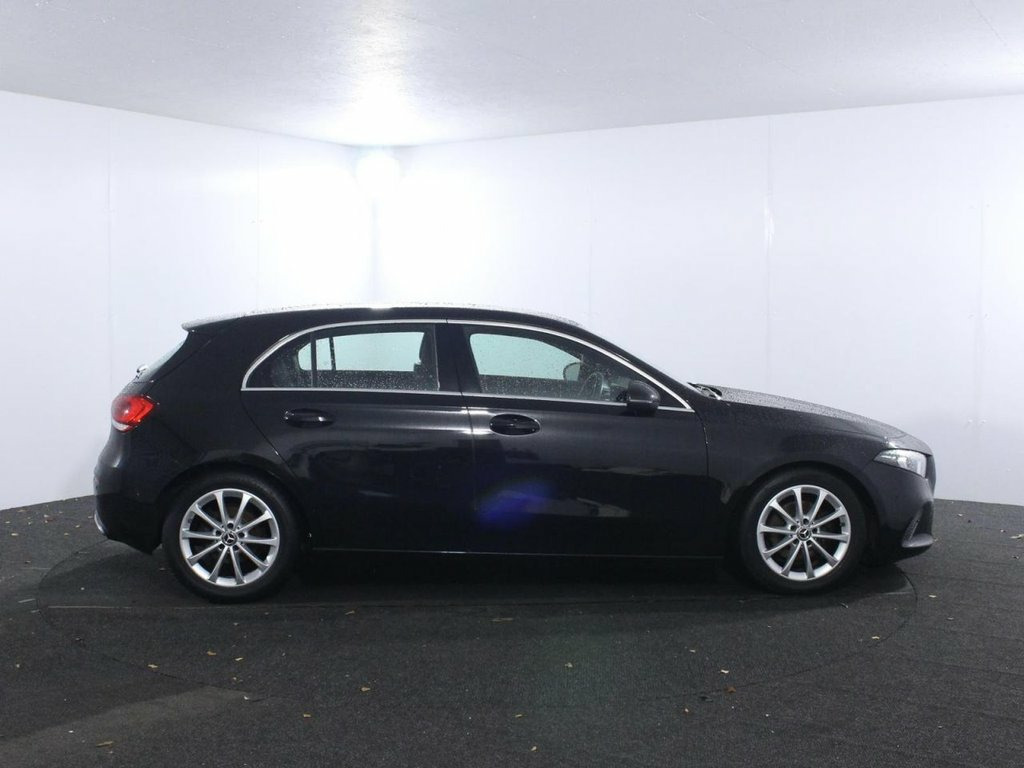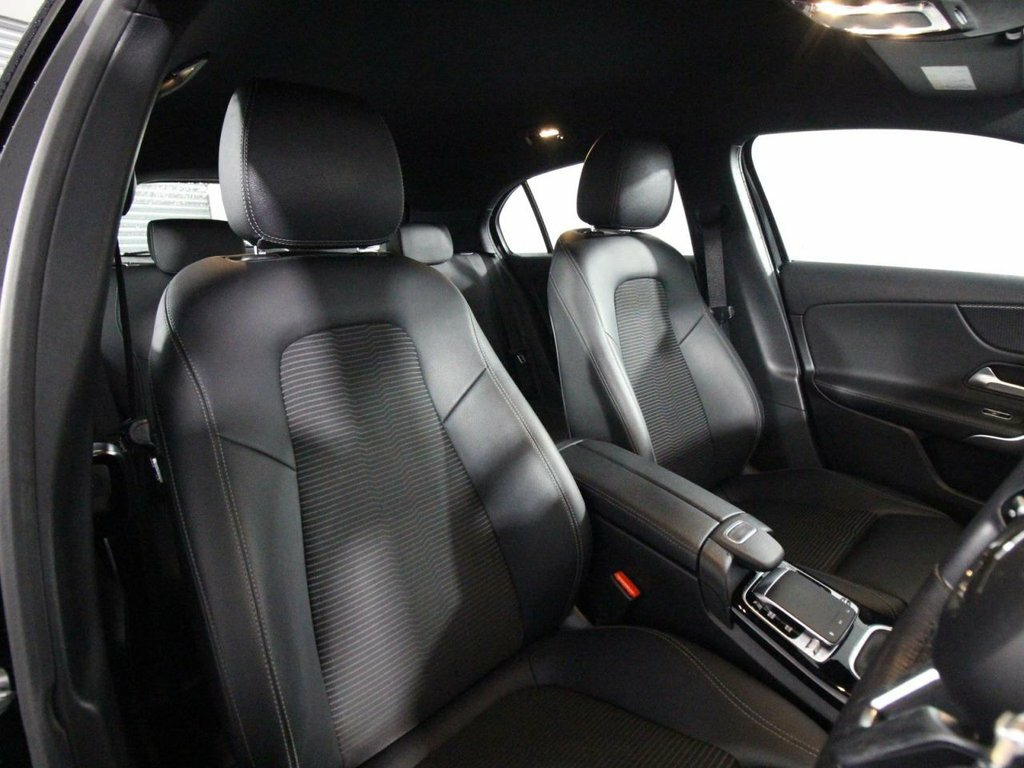2 Owners. Service history with 3 services. Last serviced at 51,894 miles in March 2025. The 2019 Mercedes-Benz A-Class 1.3 A180 Sport (Executive) is a premium compact hatchback combining sporty design, advanced technology, and refined performance. Powered by a 136 PS 1.3-litre petrol engine paired with a smooth automatic transmission, it meets Euro 6 emissions standards and enhances driving dynamics with Dynamic Select offering ECO, Comfort, Sport, and Individual modes. The Sport trim features eye-catching 17-inch 10-spoke vanadium silver alloy wheels, twin trapezoidal polished stainless steel exhaust tailpipes, and body-coloured sport side skirts complemented by chrome beltline strips and a diamond radiator grille with black pins and chrome louvre. Inside, the Executive package adds luxury with Thermotronic dual-zone automatic climate control, the MBUX Multimedia system with a 7-inch touchscreen, voice-activated Hey Mercedes assistant, and hard-disk navigation with live traffic info. Comfort is ensured with manual-adjustable comfort sport seats, a 7-inch instrument cluster, ambient lighting including footwell illumination, and sun protection glazing. The cabin is trimmed in dark carbon-fibre with chrome and metal accent finishing, while features like keyless-go start, heated door mirrors with LED turn signals, and a multifunction leather-trimmed steering wheel add convenience and style. Safety is comprehensive with an active bonnet system for pedestrian protection, adaptiv 17in Alloy Wheels - 10-Spoke - Painted i, ABS - Anti-Lock Braking System with BAS , Active Bonnet - Pedestrian Safety Measur, Active Brake ASSIST, Active Lane Keeping Assist, Adaptive Brake Assist with Hold Function, Adaptive Brake Lights, Air Conditioning - THERMOTRONIC Luxury A, Air Vents with Surround and Cruciform No, Airbag - Kneebag for Driver, Airbags - Dual Stage - Driver and Front , Airbags - Head and Sidebags - Driver and, Airbags - Windowbags for Driver and Fron, Airpanel - Active Radiator Shutters Open, Alarm System with Immobiliser and Interi, ATTENTION Assist, Automatic Child Seat Recognition Sensor, Beltline Strips - Chrome, Bodystyling - Side Skirts - Body-Coloure, Brake-Pad