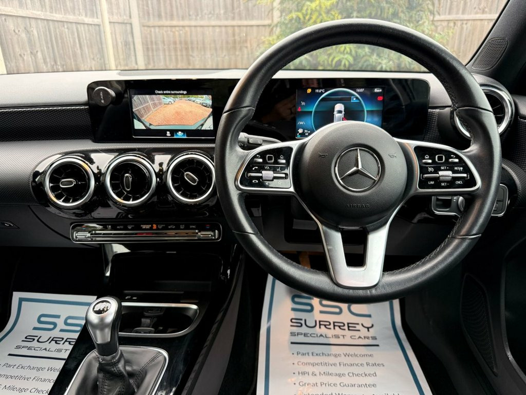 Surrey Specialist Cars are proud to present our lovely Mercedes Benz A180 Sport. This amazing car comes with Service History from the Main Dealer, finished in stunning metallic black with full leather seats. The car will come with Long MOT so it will be ready to go. The 1.3L Petrol engine offers superb economy at over 50 MPG on combined cycle. Features Include Multifunction Steering Wheel, Trip Computer, Stereo/Phone Control, Satellite Navigation, Parking Camera, Panoramic Roof,   Cruise Control, Speed Limiter, Stereo/Phone Control, FM Radio, CD Player, Bluetooth Audio, USB Input,  Eco Mode, Climate Control, 12V Charging Socket, 6 Speed Manual  Gearbox, Electric Windows, 17Inch Alloy Wheels and two Remote Control Keys to name a few.  17in Alloy Wheels - 10-Spoke - Painted i, ABS - Anti-Lock Braking System with BAS , ATTENTION Assist, Active Bonnet - Pedestrian Safety Measur, Active Brake ASSIST, Active Lane Keeping Assist, Adaptive Brake Assist with Hold Function, Adaptive Brake Lights, Air Conditioning - THERMOTRONIC Luxury A, Air Vents with Surround and Cruciform No, Airbag - Kneebag for Driver, Airbags - Dual Stage - Driver and Front , Airbags - Head and Sidebags - Driver and, Airbags - Windowbags for Driver and Fron, Airpanel - Active Radiator Shutters Open, Alarm System with Immobiliser and Interi, Automatic Child Seat Recognition Sensor, Beltline Strips - Chrome, Bodystyling - Side Skirts - Body-Coloure, Brake-Pad