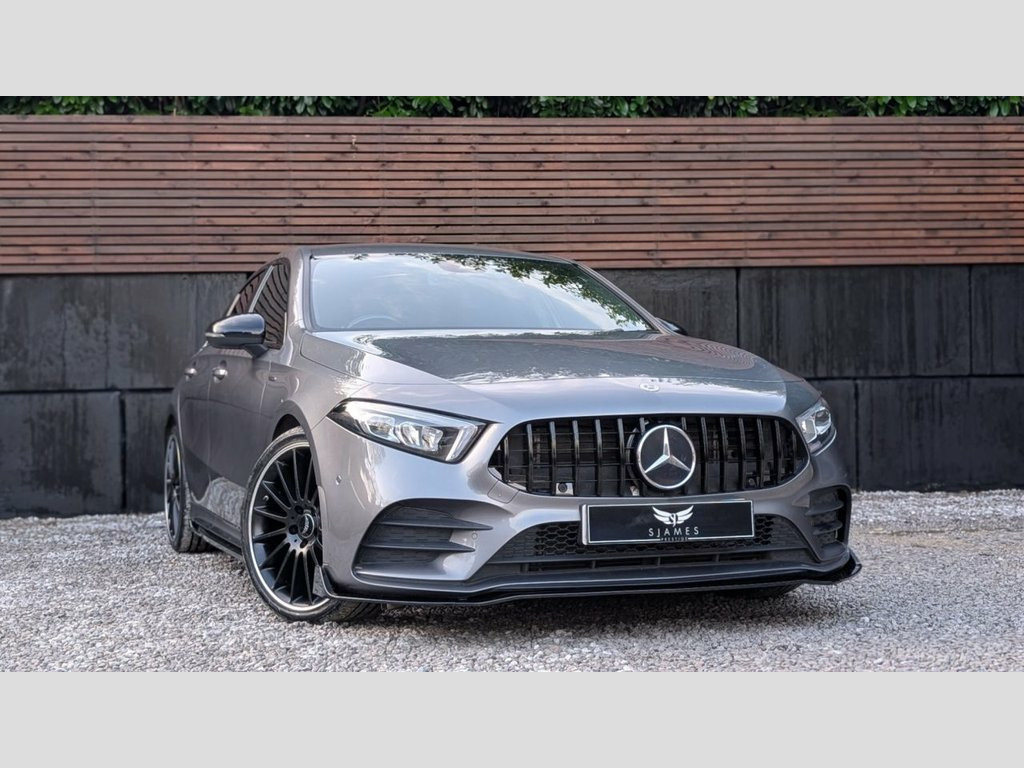THIS STUNNING A CLASS COMES WITH A GREAT SPEC INCLUDING | GTS Style grille | Gloss black styling kit | 19" Alloys | Mountain grey metallic paintwork | Automatic transmission with gearshift paddles | Black artico leather and microfibre interior with white stitching | Gloss black interior trims | Digital widescreen driving display | High resolution widescreen media display with DAB | Apple / Android CarPlay | 64 colour ambient lighting | Reverse camera | Front and rear parking sensors | Electric folding mirrors | Lane keep assist | Heated seats | High performance LED headlights Mountain Grey, Artico Leather-Dinamica Microfibre - Bla, ABS - Anti-Lock Braking System with BAS , AMG Bodystyling - AMG Front Apron with F, ATTENTION Assist, Active Bonnet - Pedestrian Safety Measur, Active Brake ASSIST, Active Lane Keeping Assist, Adaptive Brake Assist with Hold Function, Adaptive Brake Lights, Air Conditioning - THERMOTRONIC Luxury A, Air Vents - Black with Silver Chrome Ele, Airbag - Kneebag for Driver, Airbags - Dual Stage - Driver and Front , Airbags - Head and Sidebags - Driver and, Airbags - Windowbags for Driver and Fron, Alarm System with Immobiliser and Interi, Automatic Child Seat Recognition Sensor, Beltline Strips - High Gloss Black, Bodystyling - Side Skirts -