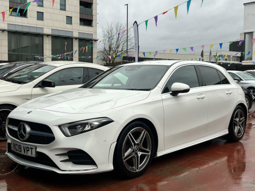 SELECT MOTORS (GB) IS DELIGHTED TO OFFER YOU THIS DAZZLING MERCEDES BENZ A200 AMG LINE (EXECUTIVE) 5DR IN WHITE COLOUR AND COMPLEMENTED WITH 18IN AMG 5 TWIN SPOKE DESIGN ALLOY WHEELS. THIS VEHICLE HAS AN IMPRESSIVE SPECIFICATION WHICH INCLUDES THE FOLLOWING; SATELLITE NAVIGATION SYSTEM, CARPLAY FOR IPHONE AND ANDROID AUTO, REVERSING CAMERA WITH 180 DEGREE VIEW, FRONT AND REAR SENSORS, BLUETOOTH CONNECTIVITY FOR PHONE AND MEDIA, DAB-FM/AM RADIO, LANE DEPARTURE WARNING SYSTEM, CRUISE CONTROL WITH LIMITER, FRONT HEATED SEATS, KEYLESS START ENGINE GO WITH START AND STOP PUSH BUTTON, THERMOTRONIC LUXURY AUTOMATIC CLIMATE CONTROL WITH ZONE DISPLAY, LED HIGH PERFORMANCE HEADLAMPS WITH INTEGRATED LED DAYTIME RUNNING LIGHTS, TYRE PRESSURE WARNING SYSTEM. THIS VEHICLE IS ULEZ EXEMPT. , WE ARE OFFERING NATIONWIDE DELIVERY ON ALL VEHICLE (PLEASE GET IN TOUCH DIRECTLY FOR DETAILS). WE CAN ALSO CONDUCT VIRTUAL VIEWINGS AND ACCOMMODATE ANY REQUESTS YOU MAY HAVE. ALL OUR ADVERTISED STOCK IS TEST-DRIVEN, INSPECTED BY OUR MECHANIC TO MAKE SURE OUR CUSTOMERS DRIVE AWAY WITH THE BEST QUALITY CARS. WE CAN PROVIDE A VIDEO WALK AROUND THIS VEHICLE UPON REQUEST. ALL OF OUR VEHICLES ARE SUPPLIED WITH A 3 MONTHS WARRANTY WITH EXTENDED OPTION. 12 MONTHS FREE AA BREAKDOWN COVER. FINANCE AVAILABLE.