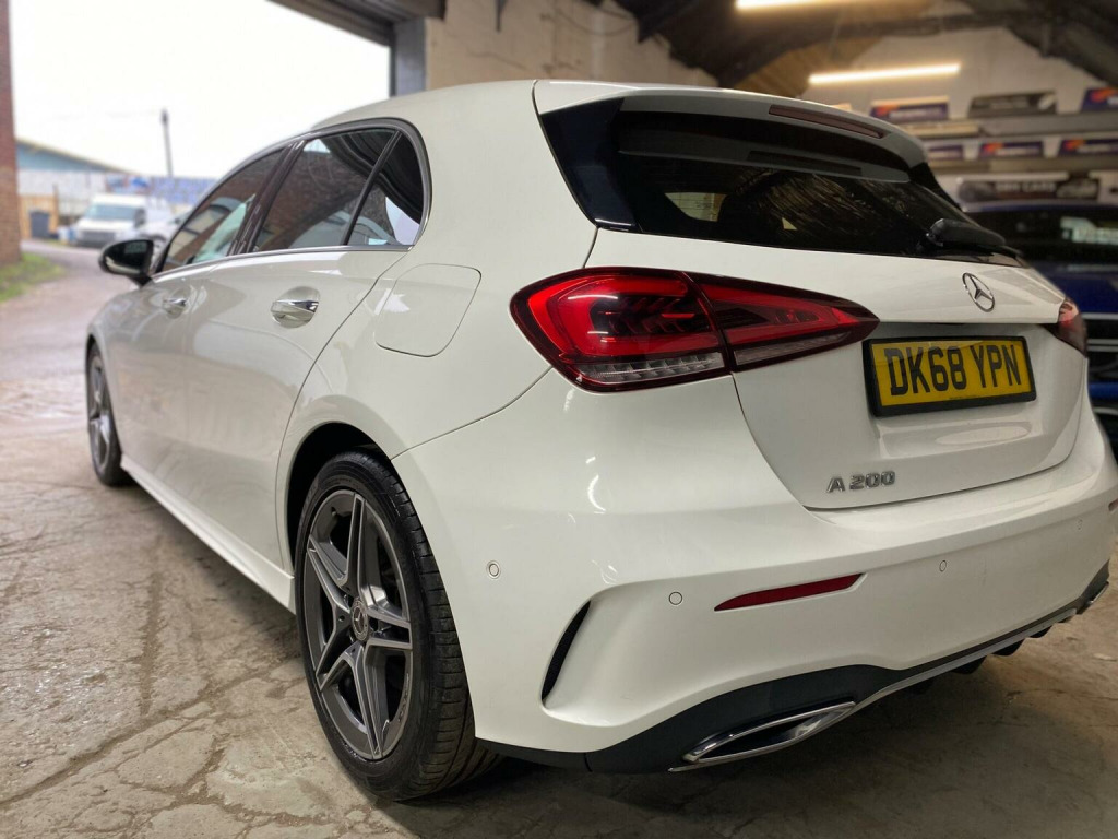 WE ARE HIGHLY RATED ON AUTO-TRADER SEE OUR FANTASTIC 5 STAR ⭐️ REVIEWS.2018..68 PLATE..MERCEDES A200 AMG-LINE*PREMIUM*1.3 PETROL *AUTO*EURO-6*FINISHED IN WHITE WITH PANO GTS GRILL*COVERED 82K WITH MERCEDES HISTORY-JUST HAD A FULL MAJOR SERVICE *MOT EXPIRES AUGUST 2026-NO ADVISORIES*GREAT LOOKING CAR WITH SPEC*AMBIENT-LIGHTING*COLOUR REVERSING CAMERA*COLOUR SAT NAV*HEATED FRONT SEATS*LARGE TOUCH SCREEN BLUETOOTH/MEDIA*CRUISE*AMG STYLING*ALLOYS*ELECTRIC WINDOWS*ELECTRIC FOLDING MIRRORS*HPI CLEAR*COMES WITH 2 KEYS*HPI CLEAR*6 MONTHS GOLD COVER WARRANTY INCLUDED*PX AVAILABLE*LOW RATE FINANCE AVAILABLE..APPLY ON LINE OR TEL..0113 482 9176 OR 07833320004 FOR MORE INFO!, This 2018 Mercedes Benz A Class A200 AMG Line (Premium) offers a refined driving experience with its 1.3 litre petrol engine. As a Euro 6 compliant vehicle, it meets stringent emission standards. The AMG Line trim enhances its sporty appeal, while the Premium Package includes convenient Keyless Entry. Inside, youll find THERMOTRONIC luxury automatic climate control with two zones and a display, ensuring personalised comfort for all occupants. Connectivity is also a strong point, with a dual Bluetooth interface and two USB Type C ports. For effortless driving, Headlamp Assist automatically activates the headlights, which are LED High Performance units with integrated LED Daytime Running Lights. This Mercedes Benz A Class excels with its impressive acceleration, reaching 0-62mph in just 8.0 seconds, demonstrating its responsive performance. The large boot space offers practicality for everyday needs and longer journeys, setting it apart from many vehicles in its class. These features combine to provide a superior driving experience, blending performance, comfort, and advanced technology.