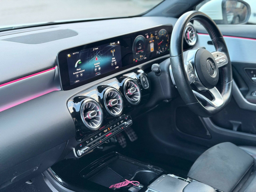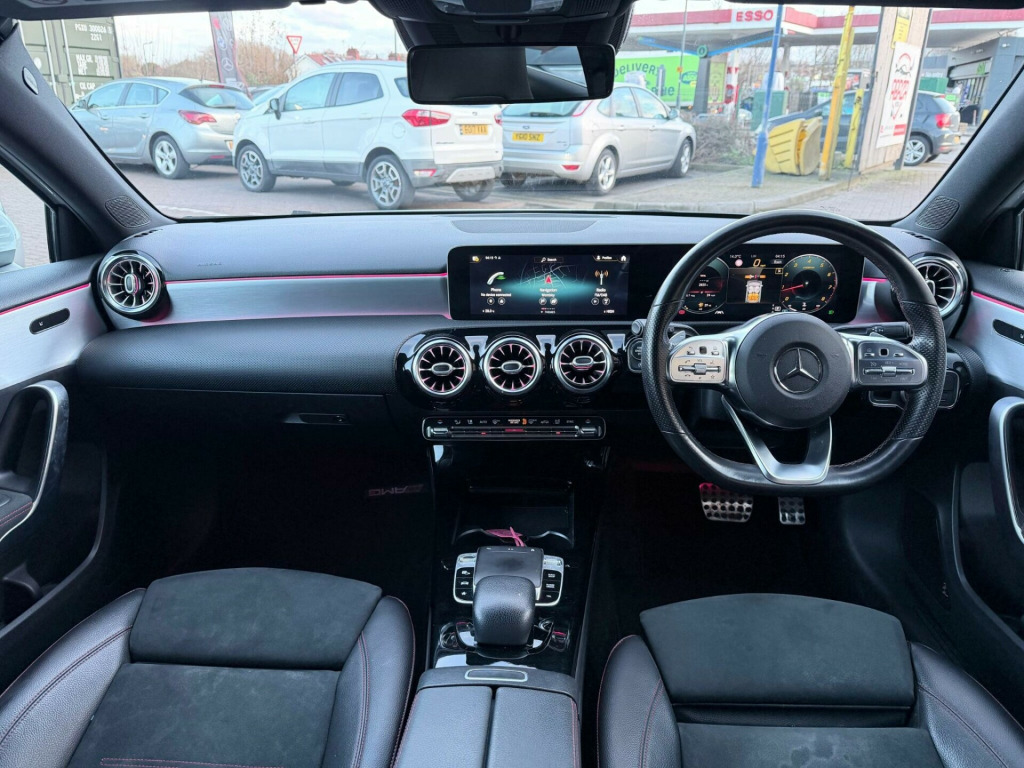 This 2018 Mercedes Benz A Class A200 AMG Line (Premium) has been cherished by just one owner since new. It features a responsive 1.3 litre petrol engine, meeting Euro 6 emissions standards, and boasts the desirable AMG Line trim. Key highlights include the Premium Package with keyless entry, automatic headlamp activation, and a 180 degree reversing camera for effortless parking.Experience superior comfort with the THERMOTRONIC luxury automatic climate control, offering two zone temperature management. Connectivity is enhanced with a dual Bluetooth interface and two USB Type C ports. This A Class offers impressive performance, accelerating from 0 to 62 miles per hour in just 8.0 seconds, demonstrating its agility. Furthermore, it provides generous boot space, making it a practical choice for everyday use and longer journeys, setting it apart from other vehicles in its class. in alloy wheels - amg 5-twin-spoke design - painted in titanium grey with a high sheen finish, abs - anti-lock braking system with bas - brake assist, amg bodystyling - front and rear apron and side skirts, attention assist, active bonnet - pedestrian safety measure which detects an impact and raises bonnet by 65mm, active brake assist, active lane keeping assist, adaptive brake assist with hold function and hill start assist, adaptive brake lights, air conditioning - thermotronic luxury automatic climate control - two-zone with display, air vents with surround and cruciform nozzle in silver chrome, airbag - kneebag for driver, airbags - dual stage - driver and front passenger, airbags - head and sidebags - driver and front passenger, airbags - windowbags for driver and front passenger, alarm system with immobiliser and interior protection - thatcham category 1, automatic child seat recognition sensor, beltline strips - chrome, bodystyling - side skirts - body-coloured, brake calipers - mercedes-benz lettering on front, brake-pad wear warning indicator, brushed stainless steel sports pedals with rubber studs, bumpers - body coloured, centre armrest - front with stowage, childproof locks - manually operated for rear doors and electrically operated for rear power windows, chrome weather strip, colour inserts in air vents, controller on centre console with chrome surround, crash-responsive emergency lighting, cruise control with limiter, cup holder - double - front, dab digital radio tuner, direct steer speed-sensitive power steering, direction indicators with lane-changer function, door handles - body coloured, door mirrors - electrically adjustable and heated with integrated led indicators, dual bluetooth interface - 2 usb ports - type c, dynamic select with a choice of driving modes - eco-comfort-sport and individual, esp - electronic stability programme with asr - acceleration skid control, esp curve dynamic assist, electric parking brake, electric windows - 4, exhaust system - twin trapezoidal tailpipes in polished stainless steel, first aid kit and warning triangle, floor mats - red stitched edging - amg lettering, footwell lights in front, front door sills with mercedes-benz lettering, glass - rear windscreen - heated with timer control, glove compartment - illuminated, hard-disk navigation, headlamp assist - automatic headlamp activation, hey mercedes - voice activation, high level third brake light - led, isofix and top-tether child seat fixing points in rear - two outer seats, instrument cluster - fluid level warning indicator for fuel - oil - coolant and washer fluid, instrument cluster - outside temperature display, instrument cluster - service indicator assyst, instrument cluster - trip computer in multi-function display with current fuel consumption indicator, interior lighting - cup holder - stowage compartment lighting, interior lighting - handle recess - closing handle - front-rear-left-right, interior lighting - oddments tray, interior lighting - reading lamp in rear in support plate - rear-left-right, interior lighting - reading lamps - front-left-right - console downlighter, interior lighting - signal exit lamp - front-left-right, interior lighting - signal and ambient lamp, interior lighting - touchpad, interior lighting - vanity lights - front-left-right, keyless-go starting function, led high performance headlamps with integrated led daytime running lights, led tail lights, light failure indicator, live traffic information, luggage compartment cover, luggage nets on driver and front passengers backrests, mbux multimedia system, mercedes me connect - standard services, premium package, radiator grille - diamond with pins in chrome and silver louvre with chrome insert, radio aerial roof spoiler, rain-sensing windscreen wipers with two sensitivity settings, rear fog light, rear windscreen wiper, remote central locking and crash sensor with emergency opening function, reversing camera with parking guidelines - 180 degree view, roof lining - black, seat belts - rear three-point - 3, seat belts reminder - front and rear, seat comfort package, seat occupancy sensor - front passenger seat, seats - front cushion length adjustment, seats - front manually adjustable, seats - rear seat backrests - split folding 1-3 - 2-3, speed limit assist, sports seats with integrated head restraints, sports suspension - lowered, steering column - manually adjustable for height and reach, steering wheel - 3-spoke multi-function - trimmed in leather with perforated leather in grip area and flattened bottom section, tirefit tyre-sealant kit, touchpad on centre console, trim - dinamica microfibre, tyre pressure monitoring system