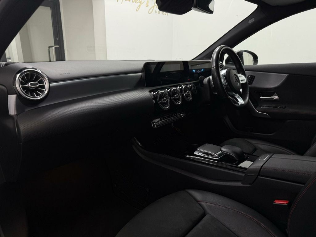 This 2019 Mercedes Benz A Class A200 AMG Line (Premium Plus) offers a sophisticated driving experience with its Euro 6 compliant 1.3 litre petrol engine. As a Premium Plus model, it comes equipped with a host of desirable features including LED headlights for enhanced visibility, a panoramic opening sunroof, and heated front seats with memory function for ultimate comfort. Keyless entry adds to the convenience, while front and rear parking sensors make manoeuvring effortless.The A200 AMG Line is designed for modern life, boasting an Advanced Connectivity Package that seamlessly integrates your smartphone with Android Auto and Apple CarPlay. You'll also benefit from wireless phone charging and a dual Bluetooth interface with two USB Type C ports, ensuring you stay connected on every journey. This model also features an advanced navigation system to guide you to your destination. With an impressive 0-62mph acceleration time of just 8.0 seconds, this Mercedes Benz offers a dynamic performance. Furthermore, the generous boot space ensures practicality for all your needs, making it a superior choice for those seeking both style and substance. in alloy wheels - amg 5-twin-spoke design - painted in titanium grey with a high sheen finish, abs - anti-lock braking system with bas - brake assist, amg bodystyling - front and rear apron and side skirts, attention assist, active bonnet - pedestrian safety measure which detects an impact and raises bonnet by 65mm, active brake assist, active lane keeping assist, adaptive brake assist with hold function and hill start assist, adaptive brake lights, air conditioning - thermotronic luxury automatic climate control - two-zone with display, air vents with surround and cruciform nozzle in silver chrome, airbag - kneebag for driver, airbags - dual stage - driver and front passenger, airbags - head and sidebags - driver and front passenger, airbags - windowbags for driver and front passenger, alarm system with immobiliser and interior protection - thatcham category 1, automatic child seat recognition sensor, beltline strips - chrome, bodystyling - side skirts - body-coloured, brake calipers - mercedes-benz lettering on front, brake-pad wear warning indicator, brushed stainless steel sports pedals with rubber studs, bumpers - body coloured, centre armrest - front with stowage, childproof locks - manually operated for rear doors and electrically operated for rear power windows, chrome weather strip, colour inserts in air vents, controller on centre console with chrome surround, crash-responsive emergency lighting, cruise control with limiter, cup holder - double - front, dab digital radio tuner, direct steer speed-sensitive power steering, direction indicators with lane-changer function, door handles - body coloured, door mirrors - electrically adjustable and heated with integrated led indicators, dual bluetooth interface - 2 usb ports - type c, dynamic select with a choice of driving modes - eco-comfort-sport and individual, esp - electronic stability programme with asr - acceleration skid control, esp curve dynamic assist, electric parking brake, electric windows - 4, exhaust system - twin trapezoidal tailpipes in polished stainless steel, first aid kit and warning triangle, floor mats - red stitched edging - amg lettering, footwell lights in front, front door sills with mercedes-benz lettering, glass - rear windscreen - heated with timer control, glove compartment - illuminated, hard-disk navigation, headlamp assist - automatic headlamp activation, hey mercedes - voice activation, high level third brake light - led, isofix and top-tether child seat fixing points in rear - two outer seats, instrument cluster - fluid level warning indicator for fuel - oil - coolant and washer fluid, instrument cluster - outside temperature display, instrument cluster - service indicator assyst, instrument cluster - trip computer in multi-function display with current fuel consumption indicator, interior lighting - cup holder - stowage compartment lighting, interior lighting - handle recess - closing handle - front-rear-left-right, interior lighting - oddments tray, interior lighting - reading lamp in rear in support plate - rear-left-right, interior lighting - reading lamps - front-left-right - console downlighter, interior lighting - signal exit lamp - front-left-right, interior lighting - signal and ambient lamp, interior lighting - touchpad, interior lighting - vanity lights - front-left-right, keyless-go starting function, led high performance headlamps with integrated led daytime running lights, led tail lights, light failure indicator, live traffic information, luggage compartment cover, luggage nets on driver and front passengers backrests, mbux multimedia system, mercedes me connect - standard services, premium plus package, radiator grille - diamond with pins in chrome and silver louvre with chrome insert, radio aerial roof spoiler, rain-sensing windscreen wipers with two sensitivity settings, rear fog light, rear windscreen wiper, remote central locking and crash sensor with emergency opening function, reversing camera with parking guidelines - 180 degree view, roof lining - black, seat belts - rear three-point - 3, seat belts reminder - front and rear, seat comfort package, seat occupancy sensor - front passenger seat, seats - front cushion length adjustment, seats - front manually adjustable, seats - rear seat backrests - split folding 1-3 - 2-3, speed limit assist, sports seats with integrated head restraints, sports suspension - lowered, steering column - manually adjustable for height and reach, steering wheel - 3-spoke multi-function - trimmed in leather with perforated leather in grip area and flattened bottom section, tirefit tyre-sealant kit, touchpad on centre console, trim - dinamica microfibre, tyre pressure monitoring system, smartphone connect package, advanced navigation package, advanced connectivity package
