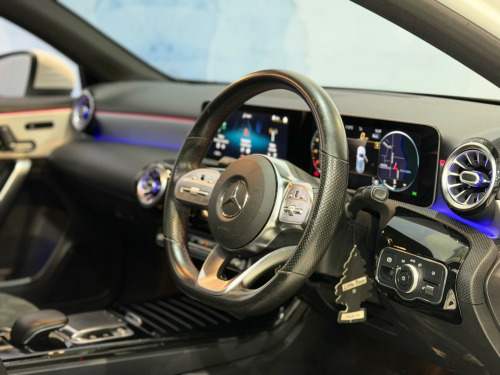 This 2018 Mercedes Benz A Class A200 AMG Line (Premium Plus) offers a refined driving experience with its 1.3 litre petrol engine. As a Euro 6 compliant vehicle, it meets modern emission standards. This particular model boasts the desirable AMG Line trim and comes equipped with the Premium Plus Package, Comes with 1 key, which includes LED High Performance Headlights with integrated daytime running lights, a panoramic opening sunroof, and heated front seats with memory function for added comfort. Convenience is further enhanced by Keyless Entry and advanced Parking Assistance sensors for both the front and rear.The A200 AMG Line (Premium Plus) also features a comprehensive Smartphone Connect Package, seamlessly integrating your Android Auto or Apple CarPlay, alongside Bluetooth connectivity and wireless phone charging. Navigating your journeys is made simple with the Advanced Navigation Package, and the Dual Bluetooth Interface with two USB Type C ports ensures all your devices stay connected. This Mercedes Benz offers impressive practicality with its large boot space, and its performance is notable, achieving 0-62mph in just 8.0 seconds, demonstrating its responsive acceleration compared to similar vehicles. artphone connect package, advanced navigation package, artico leather-dinamica microfibre - black with red contrast stitching, trim - light longitudinal-grain aluminium, 18in alloy wheels - amg 5-twin-spoke design - painted in titanium grey with a high sheen finish, abs - anti-lock braking system with bas - brake assist, amg bodystyling - front and rear apron and side skirts, attention assist, active bonnet - pedestrian safety measure which detects an impact and raises bonnet by 65mm, active brake assist, active lane keeping assist, adaptive brake assist with hold function and hill start assist, adaptive brake lights, air conditioning - thermotronic luxury automatic climate control - two-zone with display, air vents with surround and cruciform nozzle in silver chrome, airbag - kneebag for driver, airbags - dual stage - driver and front passenger, airbags - head and sidebags - driver and front passenger, airbags - windowbags for driver and front passenger, alarm system with immobiliser and interior protection - thatcham category 1, automatic child seat recognition sensor, beltline strips - chrome, bodystyling - side skirts - body-coloured, brake calipers - mercedes-benz lettering on front, brake-pad wear warning indicator, brushed stainless steel sports pedals with rubber studs, bumpers - body coloured, centre armrest - front with stowage, childproof locks - manually operated for rear doors and electrically operated for rear power windows, chrome weather strip, colour inserts in air vents, controller on centre console with chrome surround, crash-responsive emergency lighting, cruise control with limiter, cup holder - double - front, dab digital radio tuner, direct steer speed-sensitive power steering, direction indicators with lane-changer function, door handles - body coloured, door mirrors - electrically adjustable and heated with integrated led indicators, dual bluetooth interface - 2 usb ports - type c, dynamic select with a choice of driving modes - eco-comfort-sport and individual, esp - electronic stability programme with asr - acceleration skid control, esp curve dynamic assist, electric parking brake, electric windows - 4, exhaust system - twin trapezoidal tailpipes in polished stainless steel, first aid kit and warning triangle, floor mats - red stitched edging - amg lettering, footwell lights in front, front door sills with mercedes-benz lettering, glass - rear windscreen - heated with timer control, glove compartment - illuminated, hard-disk navigation, headlamp assist - automatic headlamp activation, hey mercedes - voice activation, high level third brake light - led, isofix and top-tether child seat fixing points in rear - two outer seats, instrument cluster - fluid level warning indicator for fuel - oil - coolant and washer fluid, instrument cluster - outside temperature display, instrument cluster - service indicator assyst, instrument cluster - trip computer in multi-function display with current fuel consumption indicator, interior lighting - cup holder - stowage compartment lighting, interior lighting - handle recess - closing handle - front-rear-left-right, interior lighting - oddments tray, interior lighting - reading lamp in rear in support plate - rear-left-right, interior lighting - reading lamps - front-left-right - console downlighter, interior lighting - signal exit lamp - front-left-right, interior lighting - signal and ambient lamp, interior lighting - touchpad, interior lighting - vanity lights - front-left-right, keyless-go starting function, led high performance headlamps with integrated led daytime running lights, led tail lights, light failure indicator, live traffic information, luggage compartment cover, luggage nets on driver and front passengers backrests, mbux multimedia system, mercedes me connect - standard services, premium plus package, radiator grille - diamond with pins in chrome and silver louvre with chrome insert, radio aerial roof spoiler, rain-sensing windscreen wipers with two sensitivity settings, rear fog light, rear windscreen wiper, remote central locking and crash sensor with emergency opening function, reversing camera with parking guidelines - 180 degree view, roof lining - black, seat belts - rear three-point - 3, seat belts reminder - front and rear, seat comfort package, seat occupancy sensor - front passenger seat, seats - front cushion length adjustment, seats - front manually adjustable, seats - rear seat backrests - split folding 1-3 - 2-3, speed limit assist, sports seats with integrated head restraints, sports suspension - lowered, steering column - manually adjustable for height and reach, steering wheel - 3-spoke multi-function - trimmed in leather with perforated leather in grip area and flattened bottom section, t