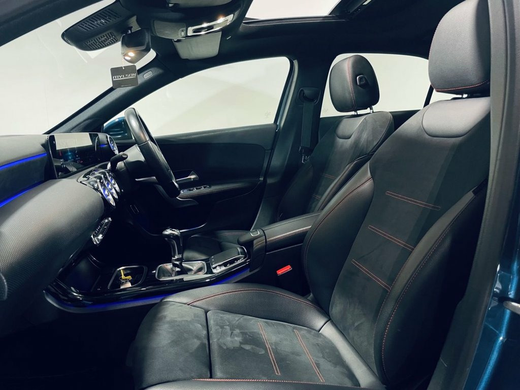 Mercedes-Benz A-Class 1.3 A200 AMG Line (Premium) Hatchback 7G-DCT OY69TYA | 38,000 miles | Denim Blue This Mercedes-Benz A200 AMG Line (Premium Plus) offers sharp styling, smooth automatic performance, and an excellent level of specification. Powered by the reliable 1.3 Petrol engine producing 163 PS and paired with the 6 Speed Manual gearbox, it delivers strong fuel efficiency with effortless everyday driving. Finished in Cosmos Black, this example is enhanced by the AMG Line Night Pack, featuring black exterior detailing and privacy glass for a sleek, sporty road presence. Inside, the Premium specification brings a high-quality cabin feel, with ambient lighting, heated seats, and seamless smartphone connectivity via Apple CarPlay. LED headlights complete the modern look both day and night. Key Features: AMG Line Styling Premium Plus Specification Panoramic Roof 6 Speed Manual Gearbox Ambient Interior Lighting Heated Front Seats FM/AM/DAB Radio Cruise Control Electric Memory Seats Reversing Camera Satellite Navigation LED Headlights Privacy Glass Additional Information Euro 6 (s/s) 163 PS 1.3 Petrol Engine ULEZ Compliant Stylish & Efficient Premium Hatchback A well-specified A-Class AMG Line Premium, offering modern technology, sporty looks, and economical diesel performance in a desirable colour combination. 18in Alloy Wheels - AMG 5-Twin-Spoke Des, ABS - Anti-Lock Braking System with BAS , AMG Bodystyling - Front and Rear Apron, ATTENTION Assist, Active Bonnet - Pedestrian Safety Measur, Active Brake ASSIST, Active Lane Keeping Assist, Adaptive Brake Assist with Hold Function, Adaptive Brake Lights, Air Conditioning - THERMOTRONIC Luxury A, Air Vents with Surround and Cruciform No, Airbag - Kneebag for Driver, Airbags - Dual Stage - Driver and Front , Airbags - Windowbags for Driver and Fron, Alarm System with Immobiliser and Interi, Automatic Child Seat Recognition Sensor, Beltline Strips - Chrome, Bodystyling - Side Skirts - Body-Coloure, Brake Calipers - Mercedes-Benz Lettering, Brake-Pad We