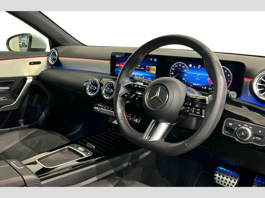 This 2023 Mercedes-Benz A Class A200h AMG Line (Premium) boasts a single owner from new, offering excellent provenance. This Euro 6 compliant petrol hybrid model features a responsive 1.3L engine and comes with an MOT valid until September 2026, with a clear vehicle history check. Inside, you'll find the comfort of heated front seats and the convenience of wireless phone charging. The AMG Line trim enhances the sporty aesthetic, while KEYLESS-GO allows for effortless locking and unlocking of doors. Experience impressive performance with a 0-60mph acceleration time of just 8.2 seconds, demonstrating its capability compared to other vehicles in its class. The LED High Performance Headlamps with integrated daytime running lights and Adaptive High Beam Assist provide excellent visibility, automatically activating thanks to Headlamp Assist. This A Class also offers generous boot space, making it a practical choice for everyday use and longer journeys. 18in Alloy Wheels - AMG 5-Twin-Spoke Des, ABS - Anti-Lock Braking System with BAS , Active Bonnet - Pedestrian Safety Measur, Active Brake ASSIST, Active Lane Keeping Assist, Adaptive Brake Assist with Hold Function, Adaptive Brake Lights, Air Conditioning - Air Vents Black with , Air Conditioning - THERMOTRONIC Luxury A, Airbag - Kneebag for Driver, Airbags - Dual Stage - Driver and Front , Airbags - Windowbags for Driver and Fron, Alarm System with Immobiliser and Interi, AMG Bodystyling - AMG Front Apron with F, ATTENTION Assist, Automatic Child Seat Recognition Sensor, Beltline Strips - High Gloss Aluminium, Blind Spot Assist, Bodystyling - Side Skirts - Body-Coloure, Bonnet with Power D