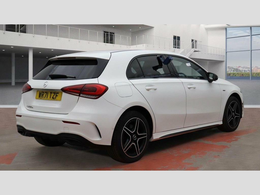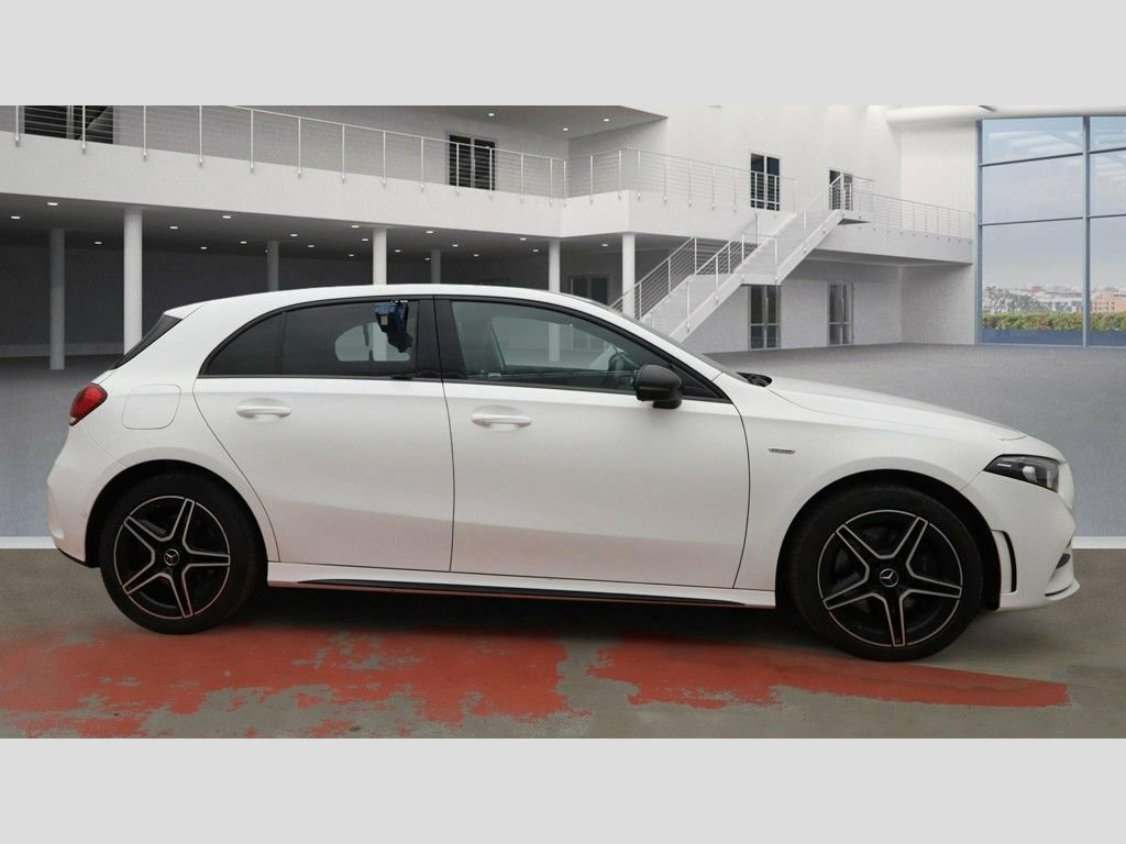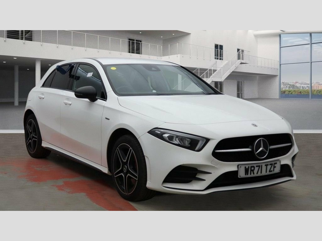Prestige Car Supermarket in York presents this 2021 Mercedes-Benz A-Class A250e AMG Line Edition Hatchback finished in Polar White with Artico leather-Dinamica microfibre in black with light grey contrast stitching, delivering a combined 218 ps through the 8G-DCT transmission and advanced plug-in hybrid technology with 15.6kWh battery and 7.4 kW AC charging system. Sitting on 18in AMG 5-twin spoke aerodynamically optimised alloy wheels and enhanced by AMG bodystyling with front splitter, side sill panels and rear apron with visible tailpipe trim elements, this example also benefits from the Night Package, privacy glass and diamond exclusive radiator grille for a sharper presence. Inside, sports seats with integrated head restraints, heated front seats, 64-colour ambient lighting, aluminium matrix look trim and a flat-bottom multifunction steering wheel with galvanised shift paddles create a focused cabin environment. Technology is led by the MBUX multimedia system with 7in media display and instrument display, hard-disk navigation, Hey Mercedes voice activation, live traffic information, dual Bluetooth interfaces and reversing camera with 180 degree view. Safety and driver assistance include Active Brake Assist, Active Lane Keeping Assist, ATTENTION Assist, cruise control with limiter, radar-based recuperation and LED High Performance headlamps, making this AMG Line Edition a refined and highly specified premium hybrid hatchback. Artico Leather-Dinamica Microfibre - Bla, Polar White, 18in Alloy Wheels - AMG 5-Twin Spoke - A, ABS - Anti-Lock Braking System with BAS , AMG Bodystyling - AMG Front Apron with F, ATTENTION Assist, Acoustic Ambient Protection, Active Bonnet - Pedestrian Safety Measur, Active Brake ASSIST, Active Lane Keeping Assist, Adaptive Brake Assist with Hold Function, Adaptive Brake Lights, Air Conditioning - THERMOTRONIC Luxury A, Air Vents - Black with Silver Chrome Ele, Airbag - Kneebag for Driver, Airbags - Dual Stage - Driver and Front , Airbags - Head and Sidebags - Driver and, Airbags - Windowbags for Driver and Fron, Alarm System with Immobiliser and Interi, Automatic Child Seat Recognition Se
