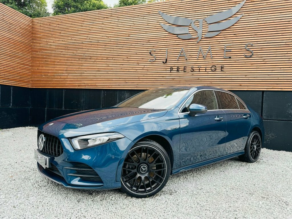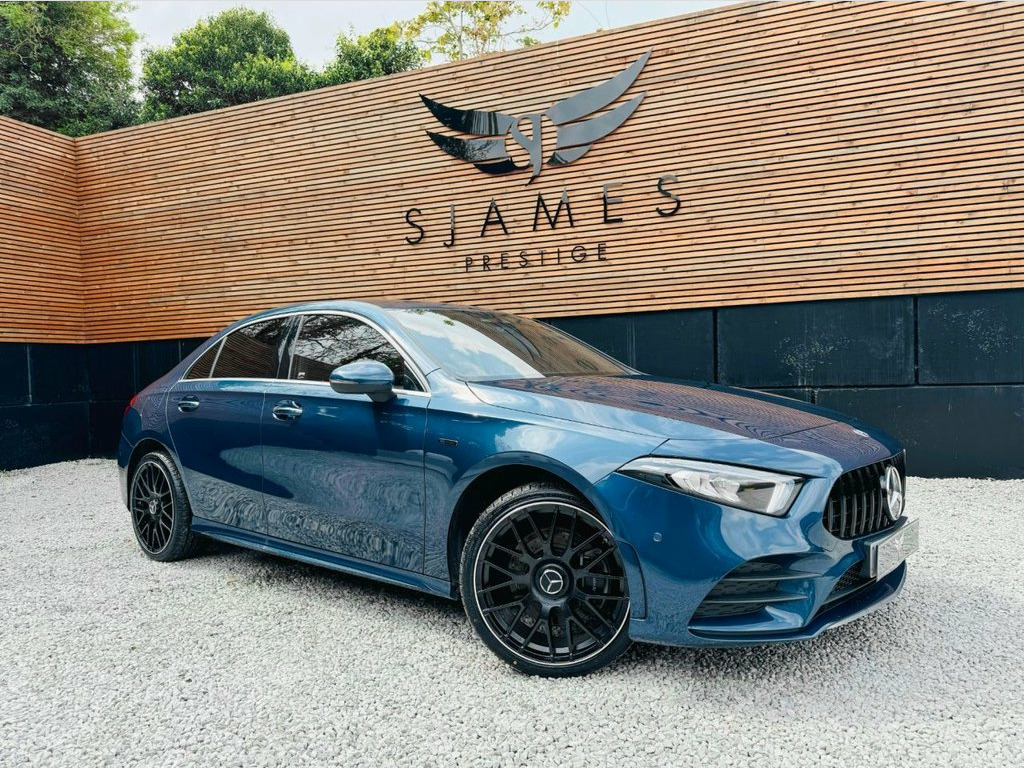 THIS STUNNING A CLASS SALOON COMES WITH A GREAT SPEC INCLUDING - GTS Style grille - Gloss black styling kit - 19" Alloys - Denim blue metallic paintwork - Automatic transmission with gearshift paddles - Black artico leather and microfibre interior with red stitching - Gloss black interior trims - Digital driving display - High resolution widescreen media display with DAB - Reverse camera - Front and rear parking sensors - Electric folding mirrors - Lane keep assist - Heated seats - High performance LED headlights - EV charge cable - OPTIONAL EXTRAS AND UPGRADES: - 36 month manufacturer equivalent warranty available - Optional brake caliper painting to a colour of your choice - Optional gloss black mirrors - Optional debadge - Optional ceramic coating - Optional machine polish - Optional gloss black badges - Optional exterior de-chrome - Optional rear privacy - The fitment of the brand new tyres, alloy wheels and styling parts are subject to a fee of £249. This also warrants the fitted parts for 12 months. - Number of keys to be confirmed at tthe point of sale. Denim Blue, Artico Leather-Dinamica Microfibre - Bla, ABS - Anti-Lock Braking System with BAS , AMG Bodystyling - Front and Rear Apron, ATTENTION Assist, Acoustic Ambient Protection, Active Bonnet - Pedestrian Safety Measur, Active Brake ASSIST, Active Lane Keeping Assist, Adaptive Brake Assist with Hold Function, Adaptive Brake Lights, Air Conditioning - THERMOTRONIC Luxury A, Air Vents - Black with Silver Chrome Ele, Airbag - Kneebag for Driver, Airbags - Dual Stage - Driver and Front , Airbags - Windowbags for Driver and Fron, Alarm System with Immobiliser and Interi, Automatic Child Seat Recognition Sensor, Beltline Strips - Chrome, Bodystyling - Side Skirts - Body-Coloure, Brake-Pad Wea
