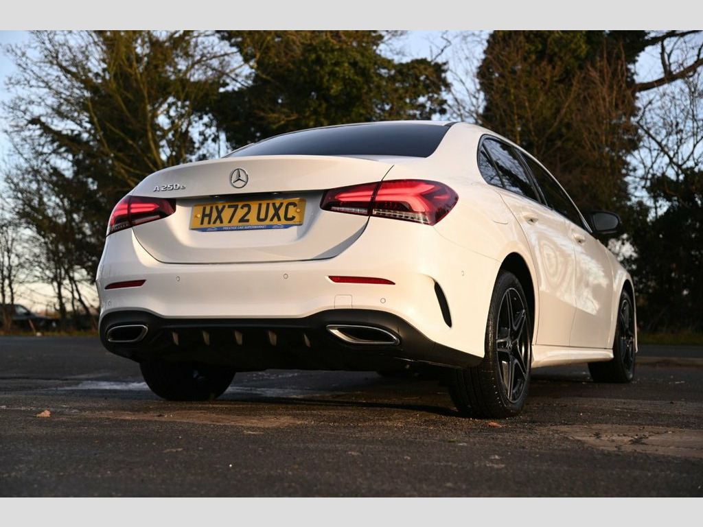 Prestige Car Supermarket in York presents this 2022 Mercedes-Benz A-Class A250e AMG Line Executive Saloon, a refined plug-in hybrid that blends strong performance with advanced technology and premium styling. Powered by a 1.3-litre petrol engine combined with an electric motor, delivering a total output of 218 ps through the smooth 8G-DCT automatic gearbox, this saloon offers responsive driving with the added benefit of hybrid efficiency. Finished in Digital White, the exterior is enhanced by AMG bodystyling, the Diamond radiator grille, Night Package detailing, black beltline strips and 18in AMG 5-twin-spoke aerodynamically optimised alloy wheels in high-sheen black. The interior features Artico leather and Dinamica microfibre sports seats with red contrast stitching, brushed stainless steel sports pedals, light linear-grain aluminium trim and a black roof lining, creating a distinctly sporty yet premium cabin environment. Technology highlights include the MBUX multimedia system with twin 10.25in displays, hard-disk navigation, live traffic information, smartphone integration, dual Bluetooth interfaces, DAB digital radio and Hey Mercedes voice activation. Comfort is supported by THERMOTRONIC two-zone climate control, heated front seats, KEYLESS-GO starting and 64-colour ambient lighting. Safety and driver assistance systems include Active Brake Assist, Active Lane Keeping Assist, ATTENTION Assist, multiple airbags and parking package features, making this A250e AMG Line Exec Digital White, Artico Leather-Dinamica Microfibre - Bla, 18in Alloy Wheels - AMG 5-Twin Spoke - A, ABS - Anti-Lock Braking System with BAS , AMG Bodystyling - AMG Front Apron with F, ATTENTION Assist, Acoustic Ambient Protection, Active Bonnet - Pedestrian Safety Measur, Active Brake ASSIST, Active Lane Keeping Assist, Adaptive Brake Assist with Hold Function, Adaptive Brake Lights, Air Conditioning - THERMOTRONIC Luxury A, Air Vents - Black with Silver Chrome Ele, Airbag - Kneebag for Driver, Airbags - Dual Stage - Driver and Front , Airbags - Windowbags for Driver and Fron, Alarm System with Immobiliser and Interi, Automatic Child Seat Recognition Sensor, Beltline Strips - Black, Bodystyli