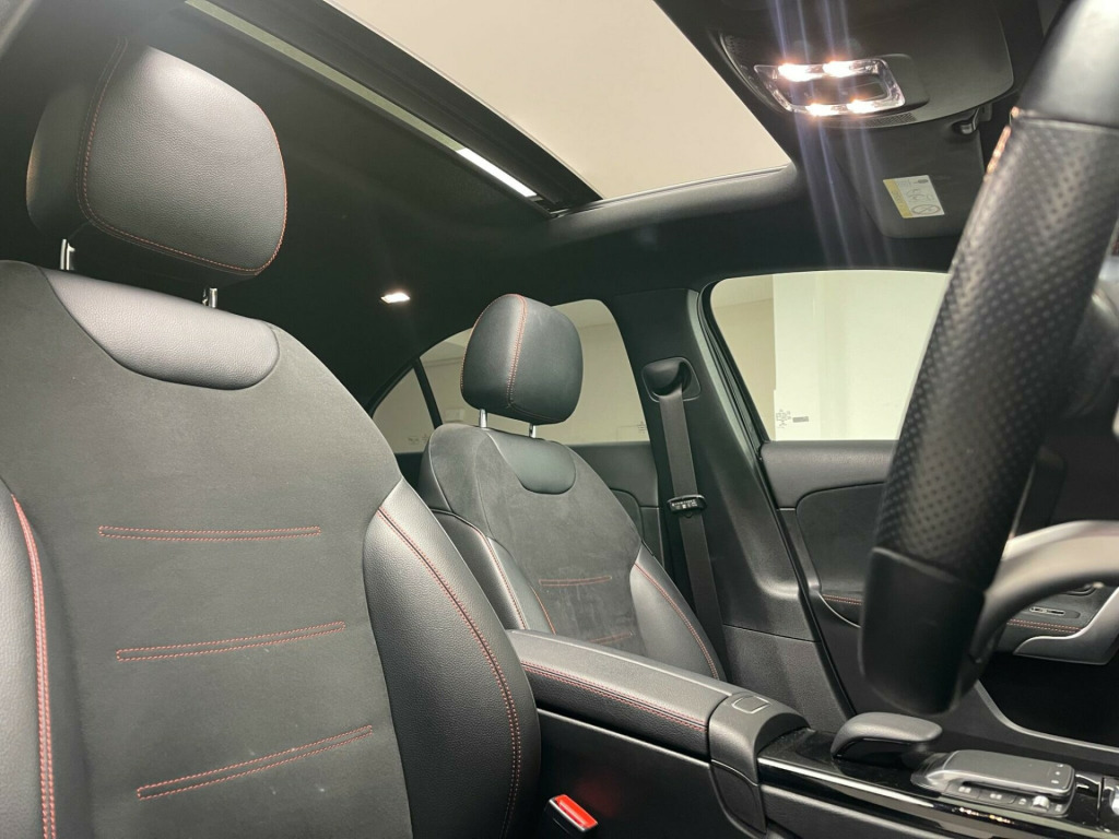 This 2022 Mercedes Benz A Class A250e AMG Line Night Edition (Premium Plus) is a superb example, having been owned by only one person since new. This Euro 6 compliant plug in hybrid model boasts a 1.3 litre petrol engine, offering an efficient and dynamic driving experience. The AMG Line Night Edition trim enhances its sporty appeal, while the Premium Plus package brings a host of desirable features. Enjoy your journeys with the impressive 100W Mercedes Benz Sound System, and stay comfortable with THERMOTRONIC luxury automatic climate control.Further enhancing this already well equipped vehicle are the panoramic glass sunroof, perfect for letting in natural light, and the comprehensive parking package which includes front and rear sensors along with a rear camera for effortless manoeuvring. For added comfort during colder months, the front seats are heated. These features collectively demonstrate a higher level of specification and refinement compared to other vehicles in its class, making this A Class a truly stand out choice. in alloy wheels - amg multi-spoke design - painted black with a high-sheen rim flange, abs - anti-lock braking system with bas - brake assist, amg bodystyling - amg front apron with front splitter - amg side sill panels and amg rear apron with visible exhaust tailpipe trim elements, attention assist, acoustic ambient protection, active bonnet - pedestrian safety measure which detects an impact and raises bonnet by 65mm, active brake assist, active lane keeping assist, adaptive brake assist with hold function and hill start assist, adaptive brake lights, air conditioning - thermotronic luxury automatic climate control - two-zone with display, air vents - black with silver chrome elements, airbag - kneebag for driver, airbags - dual stage - driver and front passenger, airbags - windowbags for driver and front passenger, alarm system with immobiliser and interior protection - thatcham category 1, automatic child seat recognition sensor, beltline strips - black, bodystyling - side skirts - body-coloured, brake calipers with mercedes-benz lettering on front, brake-pad wear warning indicator, brushed stainless steel sports pedals with rubber studs, bumpers - body coloured, car wash mode, centre armrest - front with stowage, charging cable 3 pin plug, charging cable for wallbox and public charging stations - mode 3 - 16 a - 4m, charging socket, charging system - ac charging system rated at 7.4 kw, childproof locks - manually operated for rear doors and electrically operated for rear power windows, comfort suspension, crash-responsive emergency lighting, cruise control with limiter, cup holder - twin front, dab digital radio tuner, diamond exclusive radiator grille, direct steer speed-sensitive steering, door handles - body coloured, door mirrors - electrically adjustable and heated with integrated led indicators, door sills - illuminated front door sills with changeable cover and mercedes-benz lettering, dual bluetooth interfaces, dynamic select with a choice of driving modes - eco-comfort-sport and individual, esp - electronic stability programme with asr - acceleration skid control, esp curve dynamic assist, electric parking brake, electric windows - 4, exhaust - two visible tailpipe trim elements, first aid kit and warning triangle, floor mats - amg, glass - rear windscreen - heated with timer control, hard-disk navigation, headlamp assist - automatic headlamp activation, heated front seats, hey mercedes - voice activation, isofix and top-tether child seat fixing points in rear - two outer seats, instrument cluster - fluid level warning indicator for fuel - oil - coolant and washer fluid, instrument cluster - outside temperature display, instrument cluster - service indicator assyst, instrument cluster - trip computer in multi-function display with current fuel consumption indicator, instrument display - 10.25in display, interior 64-colour ambient lighting, interior mirror with reading lamps in black and frameless, keyless-go - keyless locking-unlocking, keyless-go starting function, led tail lamps, light failure indicator, light and sight package, live traffic information, luggage compartment cover, luggage nets on driver and front passengers backrests, mbux multimedia system, multibeam led headlights with adaptive highbeam assist plus, media display - 10.25-inch with touchscreen, mercedes me - remote services, mercedes me connect - standard services, mercedes-benz sound system - 100w, mirror package, night package, owners manual - english, panoramic glass sunroof, parking package, pre-entry climate control, pre-installation for private car share, radar-based recuperation, rain-sensing windscreen wipers with two sensitivity settings, rear armrest with two cup holders, rear fog light, remote central locking and crash sensor with emergency opening function, remote and charging services plus, roof lining - black, seat belts - black, seat belts - rear three-point - 3, seat belts reminder - front and rear, seat comfort package, seat occupancy sensor - front passenger seat, seats - rear seat backrests - split folding 40-20-40, smartphone integration, speed limit assist, sports seats with adjustable head restraints, steering column - manually adjustable for height and reach, steering wheel - 3-spoke multi-function - trimmed in leather with flattened bottom section and perforated leather in grip area with galvanised shift paddles, stowage compartment in centre console with retractable cover, summer tyres, sun visors with illuminated vanity mirrors, tirefit tyre-sealant kit, touchpad on centre console, traffic sign assist, trim - light linear-grain aluminium, tyre pressure monitoring system, urban guard vehicle protection, usb - type c - 2 ports in stowage compartment and 1 in front centre console, window line - black