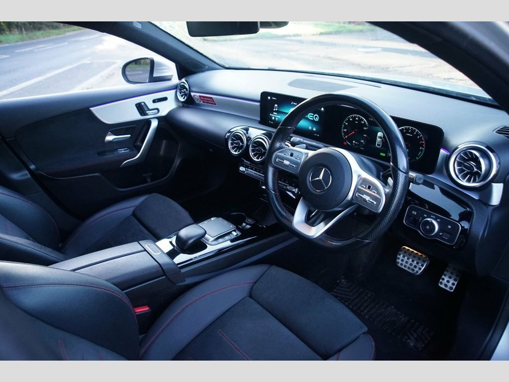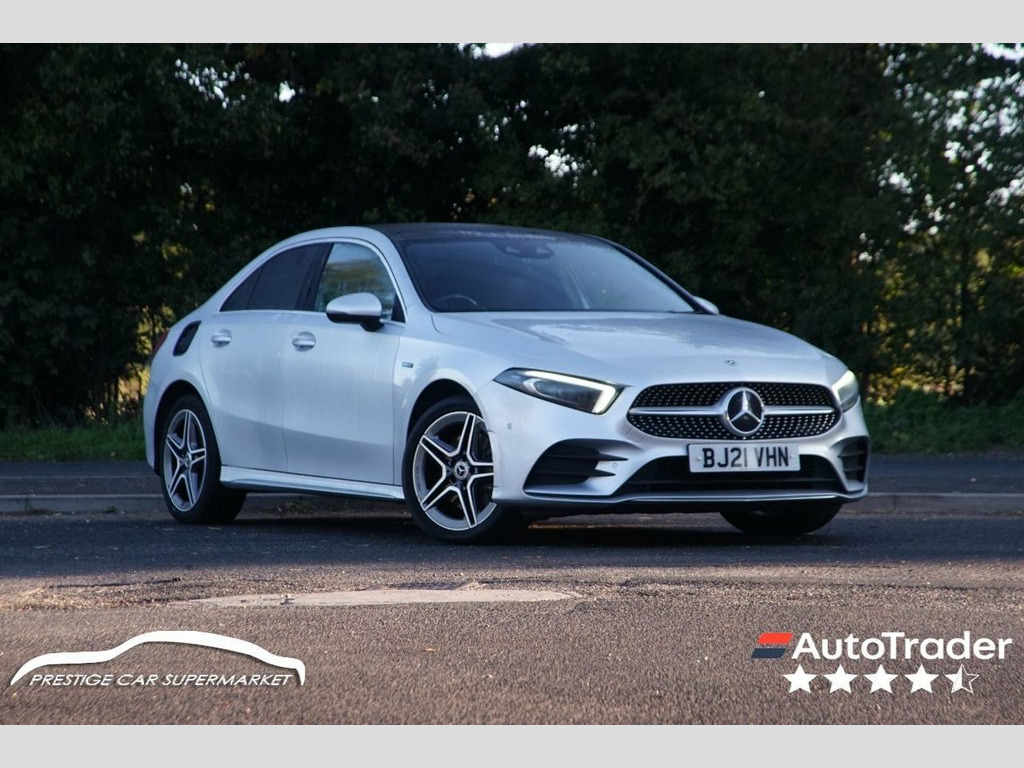 Prestige Car Supermarket in York presents this ultimate specification and highly efficient 2021 Mercedes-Benz A250e AMG Line Premium Plus 2 Saloon plug-in hybrid. Finished in Iridium Silver metallic paint and featuring a sporting Black Artico Leather-Dinamica Microfibre interior with Red Contrast Stitching, this automatic petrol hybrid saloon offers a powerful yet economical driving experience. It rides on 18in AMG 5-Twin-Spoke Design alloy wheels and features AMG Bodystyling with a Diamond Radiator Grille and Twin Trapezoidal Tailpipes. Illumination is provided by state-of-the-art MULTIBEAM LED Headlights with Adaptive Highbeam Assist Plus and LED Tail Lights. Step inside the highly appointed cabin to find a Panoramic Glass Sunroof, Electrically Adjustable Front Memory Seats with Lumbar Support and Heating, a 3-Spoke Multi-Function Leather Steering Wheel, and THERMOTRONIC Luxury Automatic Two-Zone Climate Control with Pre-Entry Climate Control functionality. Technology is comprehensive with the MBUX Multimedia System, featuring a widescreen cockpit with dual 10.25-inch displays for the Instrument Cluster and Media Display, Hard-Disk Navigation, an enhanced 225 Watt Mercedes-Benz Sound System, and Smartphone Integration with Wireless Charging. Convenience is a priority with KEYLESS-GO Keyless Locking/Unlocking, the Parking Package including a Reversing Camera, a Mirror Package, and a charging cable for public stations. Safety and driver assistance systems are extensive, inclu Iridium Silver, Artico Leather-Dinamica Microfibre - Bla, 18in Alloy Wheels - AMG 5-Twin-Spoke Des, ABS - Anti-Lock Braking System with BAS , AMG Bodystyling - Front and Rear Apron, ATTENTION Assist, Acoustic Ambient Protection, Active Bonnet - Pedestrian Safety Measur, Active Brake ASSIST, Active Lane Keeping Assist, Adaptive Brake Assist with Hold Function, Adaptive Brake Lights, Air Conditioning - THERMOTRONIC Luxury A, Air Vents - Black with Silver Chrome Ele, Airbag - Kneebag for Driver, Airbags - Dual Stage - Driver and Front , Airbags - Windowbags for Driver and Fron, Alarm System with Immobiliser and Interi, Automatic Child Seat Recognition Sensor, Beltline Strips - Chrome, Bodystyli