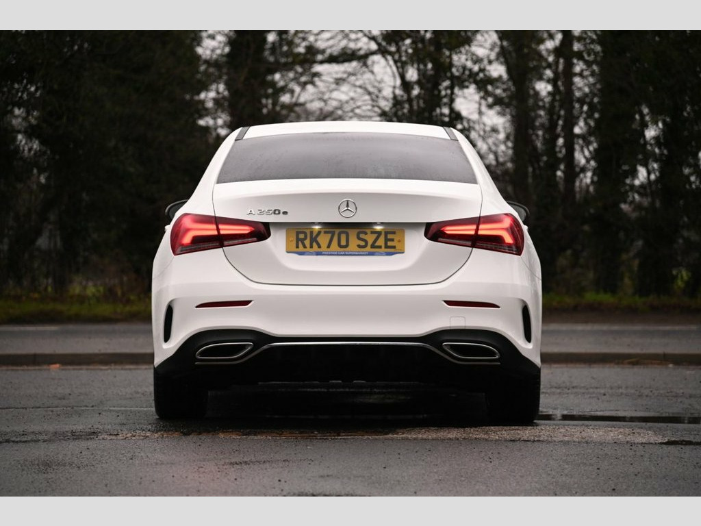 Prestige Car Supermarket in York presents this 2020 Mercedes-Benz A-Class A250e AMG Line Saloon, a sophisticated plug-in hybrid combining strong performance with impressive efficiency, delivering 218 ps through an 8G-DCT automatic gearbox. Finished in Polar White, this AMG Line model is enhanced by striking AMG bodystyling, a diamond radiator grille, chrome window detailing and 18in AMG 5-twin-spoke alloy wheels, giving it a sporty yet refined road presence. Inside, the cabin features Artico leather and Dinamica microfibre upholstery in black with red contrast stitching, complemented by sports seats, brushed stainless steel sports pedals and a flat-bottomed multifunction leather steering wheel with galvanised shift paddles. Comfort is assured with THERMOTRONIC two-zone automatic climate control, heated front seats, KEYLESS-GO start and pre-entry climate control. Technology highlights include the MBUX multimedia system with 7in touchscreen, hard-disk navigation, DAB digital radio, dual Bluetooth interfaces, Mercedes me connect, live traffic information and a reversing camera with parking guidelines. The advanced plug-in hybrid system benefits from AC charging up to 7.4 kW, radar-based recuperation and multiple driving modes via Dynamic Select. Safety and driver assistance features include active brake assist, active lane keeping assist, ATTENTION Assist, cruise control with limiter, LED high performance headlamps and a full suite of airbags, making this A250e a highly specifie Artico Leather-Dinamica Microfibre - Bla, Polar White, 18in Alloy Wheels - AMG 5-Twin-Spoke Des, ABS - Anti-Lock Braking System with BAS , AMG Bodystyling - Front and Rear Apron, ATTENTION Assist, Acoustic Ambient Protection, Active Bonnet - Pedestrian Safety Measur, Active Brake ASSIST, Active Lane Keeping Assist, Adaptive Brake Assist with Hold Function, Adaptive Brake Lights, Air Conditioning - THERMOTRONIC Luxury A, Air Vents - Black with Silver Chrome Ele, Airbag - Kneebag for Driver, Airbags - Dual Stage - Driver and Front , Airbags - Windowbags for Driver and Fron, Alarm System with Immobiliser and Interi, Automatic Child Seat Recognition Sensor, Beltline Strips - Chrome, Bodystyling