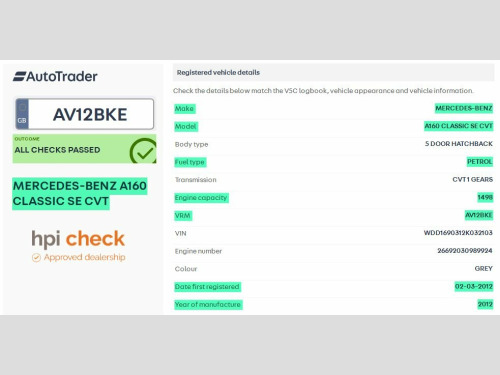 Buy with confidence from an Award Winning Independent Mercedes-Benz Specialist! We are delighted to offer our beautiful Mercedes A Class A160 "SE" Automatic 1.5 Petrol finished in the highly popular "Metallic Mountain Grey" and fitted with an Unmarked Anthracite interior with matching door cards. This is the A Class you should be buying - Competitively Priced, Super Low Miles and in Superb Condition! Lastly owned since 2015 by a Mr and Mrs Robsinson, this Mercedes-Benz has been driven sparingly, having only covered 52,000 miles since 2012. This Mature Owned vehicle is a "Facelift Model" and is supplied with its Original Manuals, Full Mercedes-Benz and Specialist Service History Record, Two Keys, MOT until November 2026, HPI Clearance Certificate and a Full and current V5 Logbook. Specification; Cruise Control, Audio 20 Media System; Bluetooth Telephone, CD Player, Radio and Auxiliary Media Input. Anti Theft Alarm System, IsoFix Mounts in Rear, Air Conditioner, Trunk Covering, Heighten Theft Protection, Theft Protection Package, Rear Seatbelt Indication Status, Rear Parking Aid, Automatic Child Seat Recognition, Seat Comfort Package, Fog Lamps plus many more features. We supply a complimentary warranty. This vehicle is a joy to drive, and the first person to see and test drive will be buying this great example. For further details, please contact Tracey on 01254 699 655 - Ref No - 24 - - ULEZ Compliant - Active Park Assist, Airbags - Rear Sidebags, Ashtray & Cigarette Lighter, Centre Armrest Rear-Removable/Through Lo, EASY-VARIO PLUS System, Exterior Sight and Light Package, Heated Screen Wash System, Luxury Climate Control, Metallic Paint, Multi-Contour Seat for Driver, Seat Comfort Package, Storage Package, Telephone Pre-Wiring/Hands-Free Facility, Windowbags