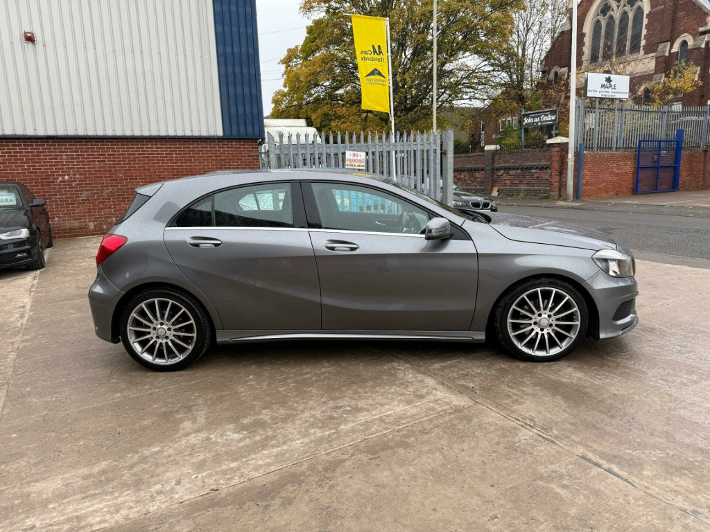 This 2013 Mercedes-Benz A Class A180 CDI AMG Sport boasts an exceptionally low mileage for its age, having covered just 93,720 miles. This particular model, registered in 2013, features the desirable AMG Sport trim and is powered by an efficient 1.5L diesel engine. It comes with a 3 month warranty for your peace of mind, and its MOT is valid until November 2026. The vehicle has a partial service history, with the last service completed on 03 November 2025 at 93,744 miles, and it has a clear vehicle history check. Notable features include stylish 18in AMG Multi-Spoke alloy wheels in a black finish, air conditioning for a comfortable cabin environment, and a Bluetooth interface for hands-free telephone calls.This Mercedes-Benz A Class offers impressive fuel economy, achieving an outstanding 71 mpg, which indicates it is more economical than many similar vehicles. Furthermore, it boasts low CO2 emissions, making it a more environmentally conscious choice. You will also appreciate the generous boot space, providing ample room for luggage or shopping. These highlights demonstrate the excellent value and practicality this A Class AMG Sport presents. in alloy wheels - amg multi spoke, 5.8in colour display, abs - anti-lock braking system, amg bodystyling, asr - acceleration skid control, attention assist, active bonnet - pedestrian safety which detects an impact and raises bonnet, adaptive brake lamps, adaptive brake system with hold function-hill start assist, air conditioning, air vents with chrome surround and cruciform nozzle, airbags - drivers kneebag, airbags - dual stage - driver, airbags - dual stage - front passenger, airbags - front sidebags, airbags - head for driver and passenger, airbags - windowbags, alarm system, ambient lighting, audio 20 radio-cd, automatic child seat recognition sensor, bas - brake assist, beltline strips - chrome, bluetooth interface for hands-free telephone, brake calipers painted with mercedes-benz lettering, brake pad wear indicator, bumpers - body coloured, centre armrest - front with storage, childproof locks - manually operated for rear doors and electrically operated for rear power windows, collision prevention assist, colour instrument cluster, controller on centre console with chrome surround, crash-responsive emergency lighting, cruise control with speedtronic variable speed limiter, cup holder - twin, daytime running lights, door handles - body coloured, door mirrors - electrically adjustable and heated with led indicators, door sills - illuminated, dynamic handling package, esp - electronic stability programme, electric parking brake, electric windows - front and rear, electronic key with chrome surround, exhaust system - two chrome tailpipes, first aid kit, fluid level warning indicator - oil-coolant-washer fluid, front footwell lighting, front seat comfort package, front seats - manually adjustable, front doors with signal lights, gear shift lever - leather trimmed with chrome highlights, gear shift trimmed in leather, halogen headlights, head restraints - manually adjustable - front and rear, headlamp assist - automatic headlamp activation, headlight failure indicator, headlining - black cloth, high level third brake light - led, isofix and top-tether child seat fixing points in rear, illuminated glove compartment, illuminated headrests on driver and front passenger seats, immobiliser, light and sight package, load securing rings in boot, luggage compartment cover, luggage compartment light, multi-function colour display with trip computer, outside air temperature gauge, pedestrian detection system, pollen filter, power steering and variable steering ratio, pre-wiring for becker map pilot navigation system, radiator grille - 2 louvres in silver with chrome highlights, radio aerial integrated into roof spoiler, rain sensing windscreen wipers, reading lights and console light in rear headlining, rear seats - split folding 1-3 2-3, rear windscreen - heated with timer control, rear windscreen wiper, remote central locking, roof lining - black, seat belts reminder - front and rear, seat occupancy sensor - front passenger seat, seats - cushion angle adjustment for front, seats - height adjusters, selective damping system, service indicator assyst, side skirts - body coloured, speakers x6, sports pedals with rubber studs, sports seats with integrated head restraints, sports suspension - lowered by 15mm, steering column - manually adjustable for height and reach, steering wheel - multi-function/12 button, steering wheel - sports-3-spoke-multifunction-trimmed nappa leather-flat bottom, storage compartment under boot floor, sun visors with illuminated vanity mirrors, telephone keypad, trim - carbon fibre effect, tyre pressure loss warning system, tyres with run-flat capability, usb interface, warning triangle, 18in alloy wheels - amg multi-spoke design in black finish
