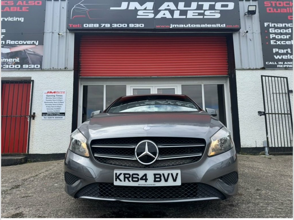 MERCEDES A-CLASS 1.5 A180 SE DCT 5d 109 BHP AUTOMATIC DECEMBER 2014 100000 MILES MOT 16 / 09 / 2026 MOT HISTORY 42K 59K 68K 75K 92K 100K WARRANTY Cars are sold with 3 months warranty OPENING HOURS MONDAY TO FRIDAY 9.00 TO 5.30 LATE NIGHT TUESDAY AND WEDNESDAY STRICTLY BY APPOINTMENT New 18 ins Alloy's and Tyres (optional extra £680) Car comes with standard wheels Finance available low rates Bad credit history we can help Car is hpi clear Fully valet Car is in excellent condition inside and out Website. www.jmautosalesltd.co.uk Magherafelt 02879300930 16in Alloy Wheels - 10-Spoke Design, 5.8-inch Tablet-Style Colour Display, ABS - Anti-Lock Braking System, ASR - Acceleration Skid Control, ATTENTION Assist, Active Bonnet - Pedestrian Safety Measur, Adaptive Brake Assist with Hold Function, Adaptive Brake Lights, Air Conditioning, Air Vents with Chrome Surround and Cruci, Airbag - Drivers Knee, Airbag - Dual-Stage - Front Passenger, Airbags - Dual-Stage - Driver, Airbags - Head for Driver and Front Pass, Airbags - Windowbags for Driver and Fron, Alarm System with Interior Protection, Audio 20 Radio-CD, Automatic Child Seat Recognition Sensor, BAS - Brake Assist, Beltline Strips - Chrome, Bluetooth, Brake-Pad Wear Warning Indicator, Bumpers