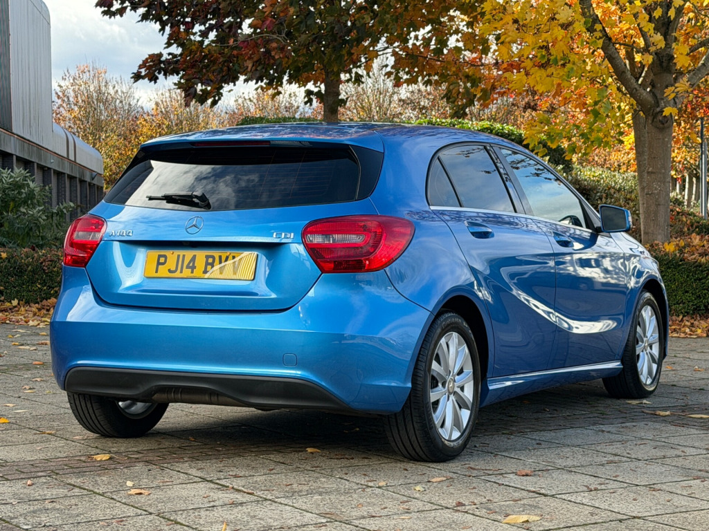 This 2014 Mercedes-Benz A-Class 1.5 A180 CDI SE Hatchback 5dr Diesel 7G-DCT Euro 5 (s/s) (109 ps) Hatchback is currently available for £10,490 in Irthlingborough Northamptonshire with Diesel engine and Automatic gearbox. For more information or to arrange a viewing, click here to send us an email using form below.