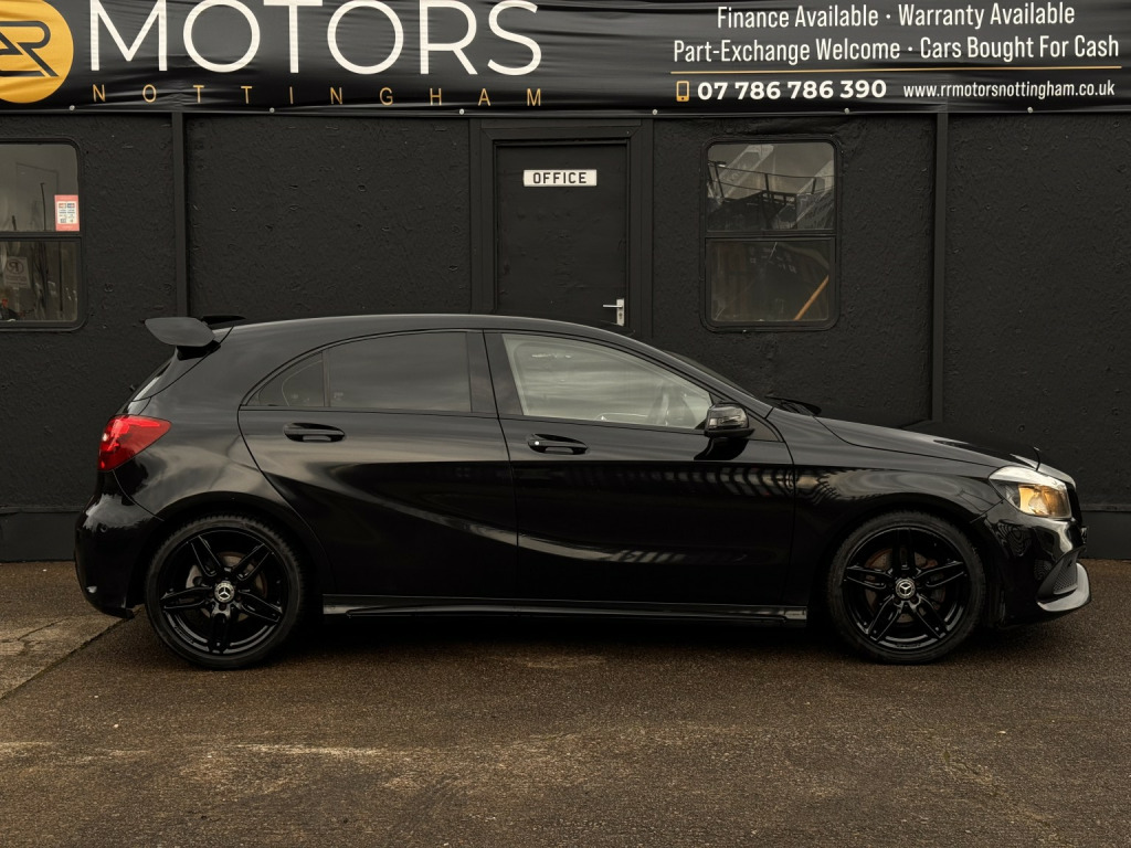 RR Motors Nottingham proudly presents this stunning Mercedes-benz A Class 1.5 A180d AMG Line finished in Black (Manual), 85740 miles, 3 previous owners. , Here for sale we have this stunning A Class, this car really stands out with its A45 style spoiler. This car comes with Navigation HDD, Parking Sensors with reverse camera, Climate Control, Half Leather Trim with front heated seats, gloss black 18 Alloy Wheels and privacy glass. 2 keys, ULEZ compliant. car has 6 services 3 from main dealer. Just been serviced and MOTd ready to go!, , Only £9,495, , All of our cars come with 6 Months MOT minimum and 3 Months Warranty, Extended warranties are available. PX welcome. Call us now on 07786786390 to secure your new vehicle. , Please note viewing is by appointment only as some of our cars are kept at our offsite secure storage facilities .