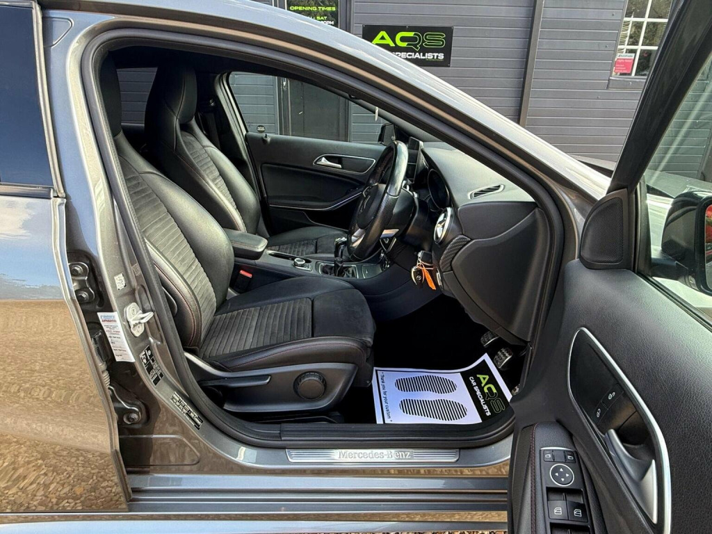Here at AQS Car Specialist we take pride in being one of the few highly rated dealers for our customer service from Autotrader working closely together so we can go the extra mile to make sure you are getting the best service out there. All vehicles undergo a full visual and Mechanical health inspection, driven and tested. All essential work carried out with no expense spared. We offer an extended nation wide warranty with the option to extend up to 36 months, giving our customers full peace of mind and security when purchasing a car from AQS car specialists. Any inspection welcome, Test drive welcome, Part exchanges welcome. All dealer facilities available on site. Here at AQS Car Specialist we are delighted to offer this great looking example of a Mercedes A Class 1.5 A180d AMG Line. Finished in Grey with a contrasting Black half leather and half alcantara interior alongside 18 inch AMG alloys. Recently serviced and complimented by a full service history as well as coming with a long MOT. In great condition both inside and out, drives great and needs for nothing ! These diesel A Classs are renown for their stylish looks, comfort, being very reliable and low maintenance. This particular example benefits from being fitted with some great features which include, Dual Zone Climate Controlled Air Conditioning, Cruise Control, Sat Nav, Bluetooth Connectivity, USB Inputs, Auto Headlights, Rain Sensing Wipers, Front Parking Sensors, Reverse Camera, Flat Bottomed Leather MultiFunctional Steering Wheel, Electric Handbrake, Hill Hold and Hill Start Assist, Collision Prevention Assist, Stop/Start Function, Full AMG Styling from Factory, Switchable Driver Modes (Eco, Comfort, Sports Individual), Tyre Pressure Monitoring System and the super useful Split Fold Rear Bench amongst all the usual Mercedes refinements you expect.
