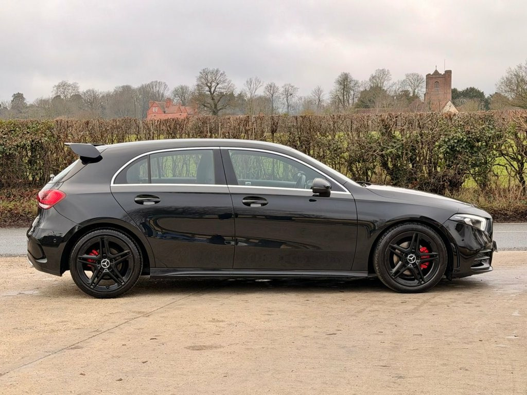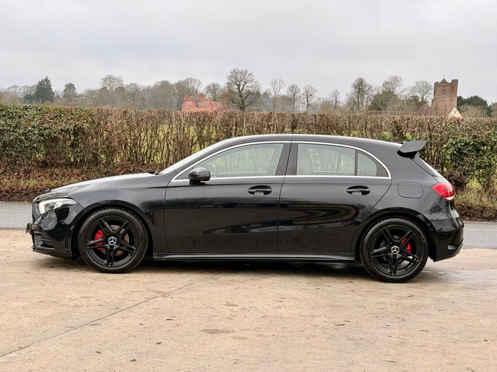 Carvender is presenting the sleek and dynamic 2019 Mercedes-Benz A-Class 1.5 A180d AMG Line (Executive) 5dr. The A-Class is a premium compact hatchback that combines style, performance and versatility. This A-Class is powered by a responsive 1.5 litre engine which delivers 116 brake horsepower. The AMG Line trim level enhances the A-Class's exterior with sporty styling cues and dynamic design elements. From its aggressive front grille to its sleek profile and stylish alloy wheels, this compact hatchback exudes athleticism and sophistication on every journey. This A-Class is equipped with premium features including Reversing Camera, Rear & Front Parking Sensors, Heated Half Leather Seats, Lane Assist, SatNav, Cruise Control, Infotainment System and much more. Please refer to advert photos for more features. This A-Class is in good condition and has been very well maintained as we have Full Service History with Main Dealer only the last one is local garage. Services have been carried out at the mileages of 5603, 6814, 7376, 11505 and 27935 on 08/12/2005. Don't miss out on the opportunity to own this fantastic Mercedes-Benz A-Class. Contact us today and schedule a test drive or visit our website for home delivery with 14 days money back guarantee. 18in Alloy Wheels - AMG 5-Twin-Spoke Des, ABS - Anti-Lock Braking System with BAS , AMG Bodystyling - Front and Rear Apron, ATTENTION Assist, Active Bonnet - Pedestrian Safety Measur, Active Brake ASSIST, Active Lane Keeping Assist, Adaptive Brake Assist with Hold Function, Adaptive Brake Lights, Air Conditioning - THERMOTRONIC Luxury A, Air Vents with Surround and Cruciform No, Airbag - Kneebag for Driver, Airbags - Dual Stage - Driver and Front , Airbags - Windowbags for Driver and Fron, Alarm System with Immobiliser and Interi, Automatic Child Seat Recognition Sensor, Beltline Strips - Chrome, Bodystyling - Side Skirts - Body-Coloure, Brake Calipers - Mercedes-Benz Lettering, Brake-Pad We