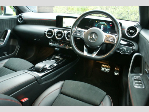 New shape 2018/68 Mercedes-Benz A-Class A180d AMG Line Auto finished in Polar white with Half black leather and alcantara interior with red contrast stitching. Two former keepers from new with full service history and presented in fantastic condition. Specification includes 18 inch alloy wheels in gloss black, LED high performance headlights, reversing camera, privacy glass, Satellite navigation system, DAB radio, bluetooth, USB connection, multi-function steering wheel with gear shift paddles, cruise control, voice control, auto lights, piano black interior trim, dual zone climate control, dynamic select drive modes, aluminium sill strips with Mercedes-Benz lettering, lane departure warning, speed limit sign assist and AMG floor mats. Full service history, next service not due for another 252 days. 18in Alloy Wheels - AMG 5-Twin-Spoke Des, ABS - Anti-Lock Braking System with BAS , Active Bonnet - Pedestrian Safety Measur, Active Brake ASSIST, Active Lane Keeping Assist, Adaptive Brake Assist with Hold Function, Adaptive Brake Lights, Air Conditioning - THERMOTRONIC Luxury A, Air Vents with Surround and Cruciform No, Airbag - Kneebag for Driver, Airbags - Dual Stage - Driver and Front , Airbags - Head and Sidebags - Driver and, Airbags - Windowbags for Driver and Fron, Airpanel - Active Radiator Shutters Open, Alarm System with Immobiliser and Interi, AMG Bodystyling - Front and Rear Apron a, Artico Leather-Dinamica Microfibre - Bla, ATTENTION Assist, Automatic Child Seat Recognition Se