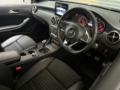 For sale is this stylish and sporty Mercedes A-Class 1.5 A180d AMG Line Hatchback 5dr Diesel Manual Euro 6 (s/s) (109 ps), finished in eye-catching Cavansite Blue metallic with half leather, half Alcantara sports seats. This example comes with a good service history, has just been serviced prior to sale, and has also had new brake discs and pads fitted for added peace of mind. It has been very well looked after, is presented in excellent condition both inside and out, and drives superbly. This A-Class is the desirable AMG Line model, combining premium comfort with a sporty edge. The specification is impressive and includes the Smartphone Integration Package with Apple CarPlay and Android Auto, satellite navigation, and a reversing camera for added convenience. Inside, you'll find the AMG leather sports multifunction steering wheel, illuminated door sills, the Seat Comfort Package, and the Illumination Package, which enhance both luxury and practicality. Additional highlights include 18-inch AMG double-spoke alloy wheels, speed-sensitive power steering with variable steering, automatic rain and light sensors, cruise control, a single CD player, Bluetooth for telephone and audio, and ISOFIX child seat preparation. Well cared for and packed with desirable features, this Mercedes A180d AMG Line offers the perfect balance of efficiency, comfort, and dynamic styling. A superb example that's ready to drive away and enjoy. Cavansite Blue, 18in Alloy Wheels - AMG 5-Twin-Spoke Des, ABS - Anti-Lock Braking System with BAS , AMG Bodystyling - Front and Rear Apron a, ATTENTION Assist, Active Bonnet - Pedestrian Safety Measur, Active Braking Assist, Adaptive Brake Assist with Hold Function, Adaptive Brake Lights, Air Vents with Surround and Cruciform No, Airbags - Dual Stage - Driver and Front , Airbags - Head and Sidebags - Driver and, Airbags - Windowbags for Driver and Fron, Alarm System with Immobiliser and Interi, Ambient Lighting in Headrests and Interi, Audio 20 Radio-CD-MP3 Compatibility, Automatic Child Seat Recognition Sensor, Beltline Strips - Chrome, Bodystyling - Side Skirts - Body-Coloure, Brake Calipe