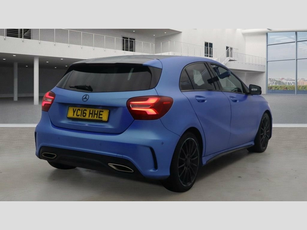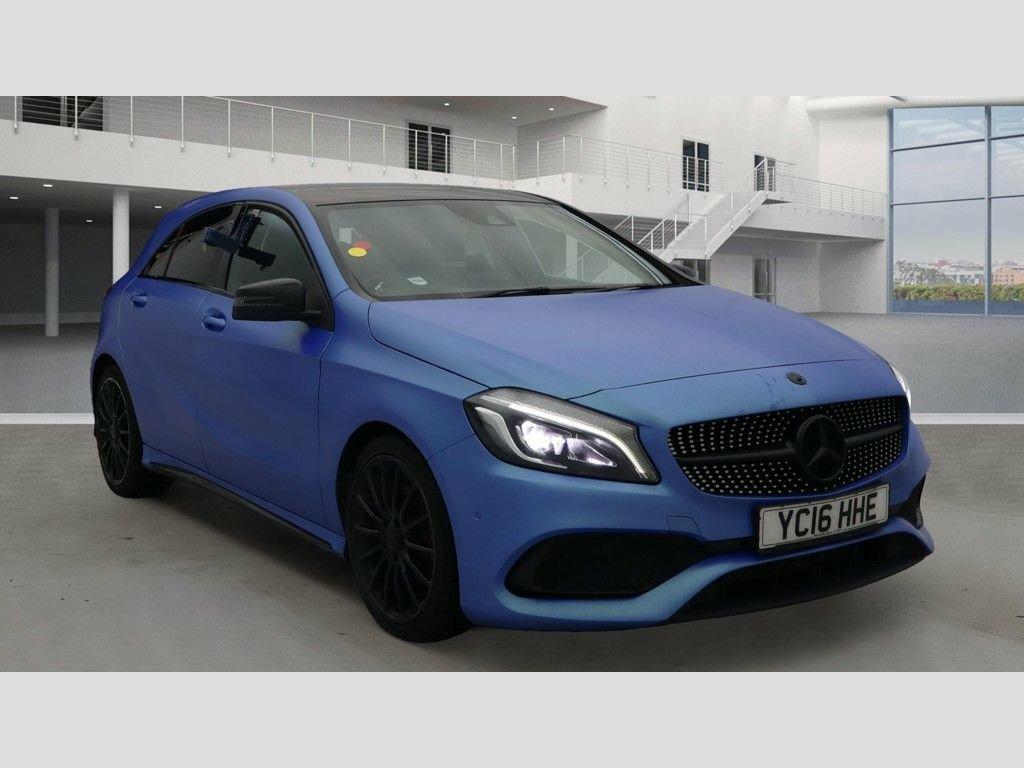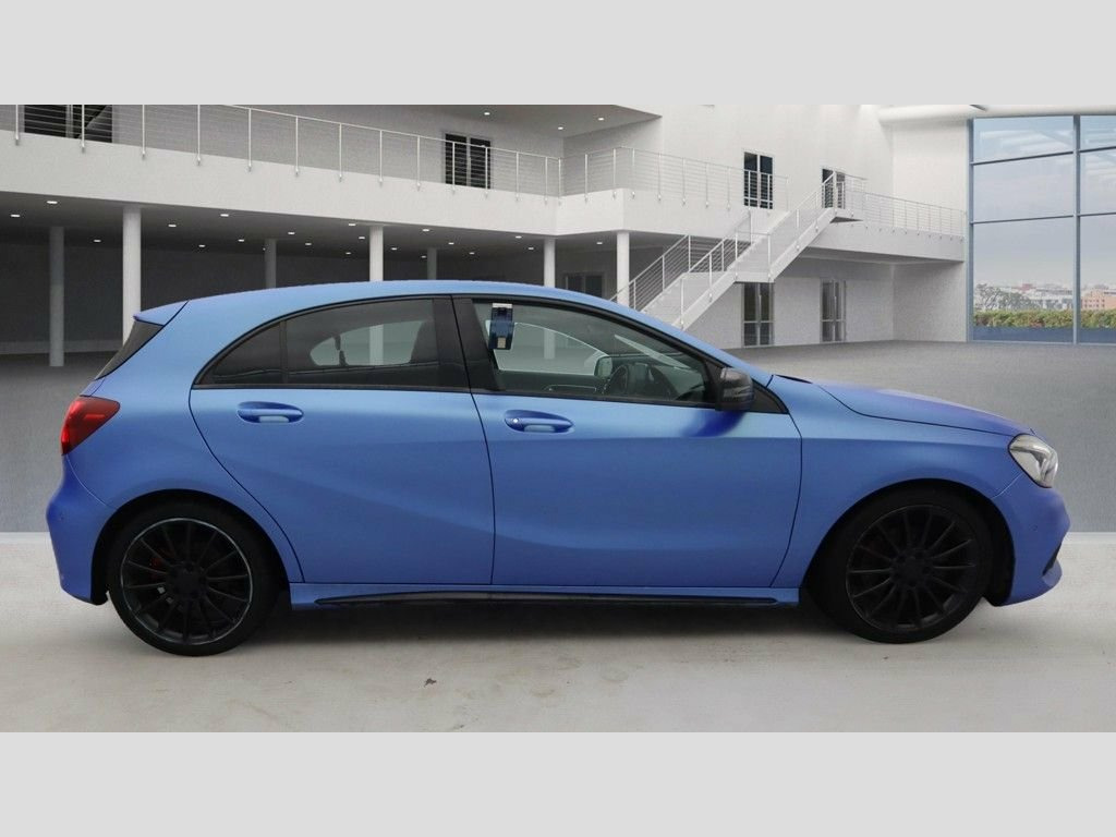 Mercedes-Benz A Class 1.5 A180d AMG Line (Premium) – £6,995 Eye-catching A-Class finished in stunning electric matte blue wrap that really turns heads. This is the desirable AMG Line (Premium) model with the economical 1.5 diesel Euro 6 engine, giving you low running costs and great performance. Supplied with a fresh MOT & service just carried out and brand new brakes all round, so it is properly prepared and ready to drive away. Only one former keeper is showing on the V5, reflecting careful ownership and a well-looked-after car. For extra peace of mind it comes with a 2-year nationwide Handler Protect Gold warranty included in the price, covering major mechanical and electrical components with UK-wide repair network support. This gives excellent protection against unexpected repair bills during your ownership. Fantastic value at just £6,995 – a stylish AMG Line hatchback that looks superb, drives great and is fully prepared, with a long warranty included. Contact us today to arrange a viewing or test drive; part exchange is welcome and finance can usually be arranged (subject to status). 12V Socket, 12V Socket in Luggage Compartment, 18in Alloy Wheels - AMG 5-Twin-Spoke Des, 8-inch Frameless Tablet-style Colour Dis, ABS - Anti-Lock Braking System with BAS , AMG Bodystyling - Front and Rear Apron a, ATTENTION Assist, Active Bonnet - Pedestrian Safety Measur, Active Braking Assist, Adaptive Brake Assist with Hold Function, Adaptive Brake Lights, Air Vents with Surround and Cruciform No, Airbags - Dual Stage - Driver and Front , Airbags - Head and Sidebags - Driver and, Airbags - Windowbags for Driver and Fron, Alarm System with Immobiliser and Interi, Audio 20 Radio-CD-MP3 Compatibility, Automatic Child Seat Recognition Sensor, Beltline Strips - Chrome, Bodystyling - Side Skir