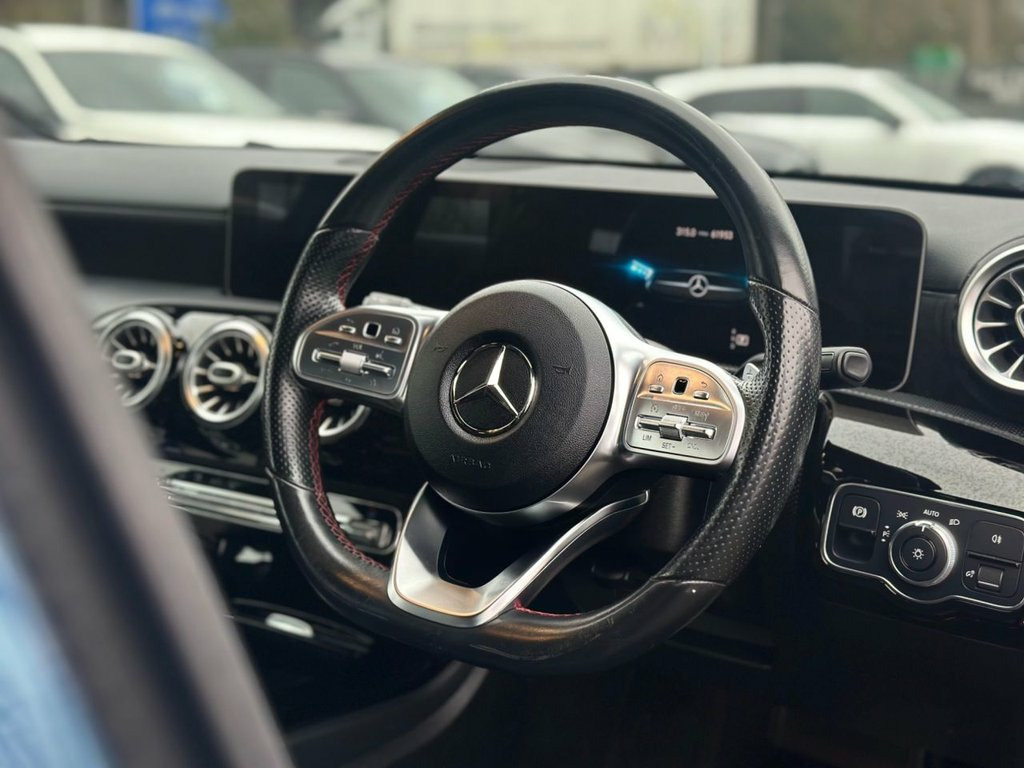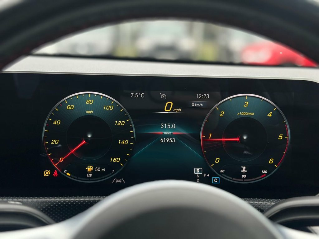 The 2019 Mercedes-Benz A-Class 1.5 A180d AMG Line (Premium) Hatchback is a refined and efficient five-door diesel hatchback designed for UK driving, combining premium quality with sporty styling and everyday practicality. Powered by a 1.5-litre diesel engine producing around 114 bhp, it delivers smooth performance through a 7-speed automatic transmission, offering strong fuel economy and low emissions while remaining comfortable for longer journeys. The AMG Line trim enhances its appearance with 18-inch alloy wheels, sportier body styling, and a more dynamic stance, while the Premium specification adds high-end features such as ambient lighting, sports seats, advanced infotainment with navigation, and a digital cockpit feel. Inside, the cabin is modern, well-built and technology-focused, providing a comfortable environment for both driver and passengers, while the 360-litre boot ensures practical everyday usability. Overall, the A180d AMG Line Premium offers an attractive balance of efficiency, comfort and sporty Mercedes-Benz design in a compact hatchback package. 18in Alloy Wheels - AMG 5-Twin-Spoke Des, ABS - Anti-Lock Braking System with BAS , AMG Bodystyling - Front and Rear Apron a, ATTENTION Assist, Active Bonnet - Pedestrian Safety Measur, Active Brake ASSIST, Active Lane Keeping Assist, Adaptive Brake Assist with Hold Function, Adaptive Brake Lights, Air Conditioning - THERMOTRONIC Luxury A, Air Vents with Surround and Cruciform No, Airbag - Kneebag for Driver, Airbags - Dual Stage - Driver and Front , Airbags - Head and Sidebags - Driver and, Airbags - Windowbags for Driver and Fron, Airpanel - Active Radiator Shutters Open, Alarm System with Immobiliser and Interi, Automatic Child Seat Recognition Sensor, Beltline Strips - Chrome, Bodystylin