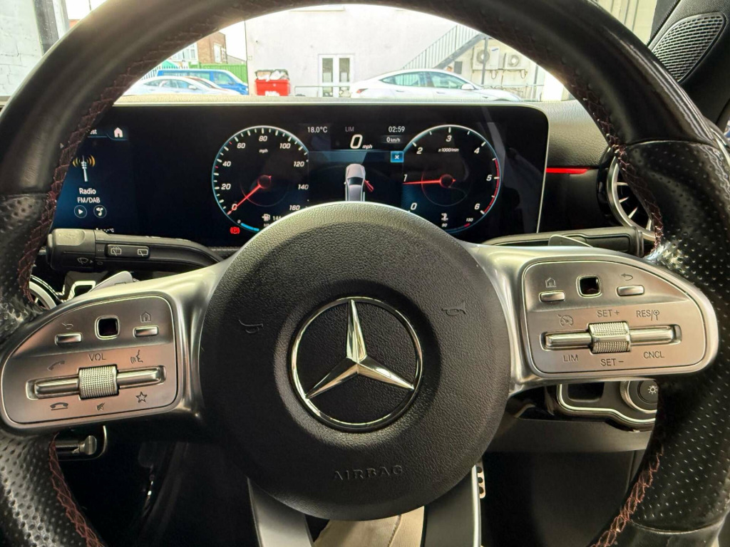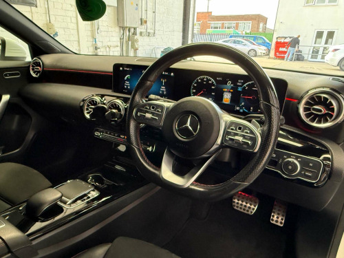 This 2018 Mercedes Benz A Class A180d AMG Line (Premium) offers a sophisticated driving experience with its Euro 6 compliant 1.5L diesel engine. As a Premium model, it comes equipped with the desirable AMG Line trim, enhancing its sporty appeal. Key features include LED High Performance Headlamps with integrated LED Daytime Running Lights, ensuring excellent visibility. For convenience, it boasts Keyless Entry and a 180 Degree View Reversing Camera with Parking Guidelines, making manoeuvring effortless. Connectivity is also a strong point, with a Dual Bluetooth Interface and two USB Type C ports. The Headlamp Assist automatically activates the headlights, providing added safety and ease of use.This A Class stands out with its generous boot space, offering practicality for everyday needs and longer journeys. The inclusion of the Premium Package, along with the advanced lighting and parking assistance systems, demonstrates a higher level of specification compared to other vehicles in its class. This Mercedes Benz A Class combines style, advanced technology, and comfort, making it a compelling choice for those seeking a premium compact car. in alloy wheels - amg 5-twin-spoke design - painted in titanium grey with a high sheen finish, abs - anti-lock braking system with bas - brake assist, amg bodystyling - front and rear apron and side skirts, attention assist, active bonnet - pedestrian safety measure which detects an impact and raises bonnet by 65mm, active brake assist, active lane keeping assist, adaptive brake assist with hold function and hill start assist, adaptive brake lights, air conditioning - thermotronic luxury automatic climate control - two-zone with display, air vents with surround and cruciform nozzle in silver chrome, airbag - kneebag for driver, airbags - dual stage - driver and front passenger, airbags - head and sidebags - driver and front passenger, airbags - windowbags for driver and front passenger, alarm system with immobiliser and interior protection - thatcham category 1, automatic child seat recognition sensor, beltline strips - chrome, bodystyling - side skirts - body-coloured, brake calipers - mercedes-benz lettering on front, brake-pad wear warning indicator, brushed stainless steel sports pedals with rubber studs, bumpers - body coloured, centre armrest - front with stowage, childproof locks - manually operated for rear doors and electrically operated for rear power windows, chrome weather strip, colour inserts in air vents, controller on centre console with chrome surround, crash-responsive emergency lighting, cruise control with limiter, cup holder - double - front, dab digital radio tuner, direct steer speed-sensitive power steering, direction indicators with lane-changer function, door handles - body coloured, door mirrors - electrically adjustable and heated with integrated led indicators, dual bluetooth interface - 2 usb ports - type c, dynamic select with a choice of driving modes - eco-comfort-sport and individual, esp - electronic stability programme with asr - acceleration skid control, esp curve dynamic assist, electric parking brake, electric windows - 4, exhaust system - twin trapezoidal tailpipes in polished stainless steel, first aid kit and warning triangle, floor mats - red stitched edging - amg lettering, footwell lights in front, front door sills with mercedes-benz lettering, glass - rear windscreen - heated with timer control, glove compartment - illuminated, hard-disk navigation, headlamp assist - automatic headlamp activation, hey mercedes - voice activation, high level third brake light - led, isofix and top-tether child seat fixing points in rear - two outer seats, instrument cluster - fluid level warning indicator for fuel - oil - coolant and washer fluid, instrument cluster - outside temperature display, instrument cluster - service indicator assyst, instrument cluster - trip computer in multi-function display with current fuel consumption indicator, interior lighting - cup holder - stowage compartment lighting, interior lighting - handle recess - closing handle - front-rear-left-right, interior lighting - oddments tray, interior lighting - reading lamp in rear in support plate - rear-left-right, interior lighting - reading lamps - front-left-right - console downlighter, interior lighting - signal exit lamp - front-left-right, interior lighting - signal and ambient lamp, interior lighting - touchpad, interior lighting - vanity lights - front-left-right, keyless-go starting function, led high performance headlamps with integrated led daytime running lights, led tail lights, light failure indicator, live traffic information, luggage compartment cover, luggage nets on driver and front passengers backrests, mbux multimedia system, mercedes me connect - standard services, premium package, radiator grille - diamond with pins in chrome and silver louvre with chrome insert, radio aerial roof spoiler, rain-sensing windscreen wipers with two sensitivity settings, rear fog light, rear windscreen wiper, remote central locking and crash sensor with emergency opening function, reversing camera with parking guidelines - 180 degree view, roof lining - black, seat belts - rear three-point - 3, seat belts reminder - front and rear, seat comfort package, seat occupancy sensor - front passenger seat, seats - front cushion length adjustment, seats - front manually adjustable, seats - rear seat backrests - split folding 1-3 - 2-3, speed limit assist, sports seats with integrated head restraints, sports suspension - lowered, steering column - manually adjustable for height and reach, steering wheel - 3-spoke multi-function - trimmed in leather with perforated leather in grip area and flattened bottom section, tirefit tyre-sealant kit, touchpad on centre console, trim - dinamica microfibre, tyre pressure monitoring system