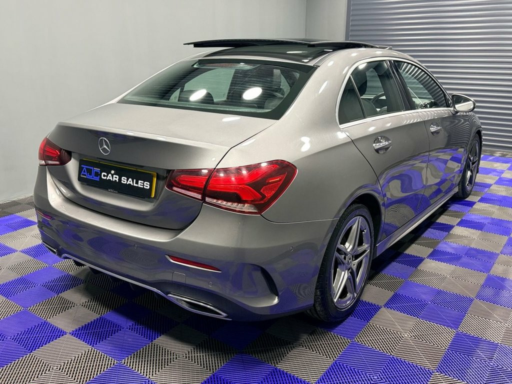 AJC Car Sales presents this stunning MERCEDES-BENZ A-CLASS 1.5 A180d AMG Line (Premium Plus) Saloon 4dr Diesel 7G-DCT Euro 6 (s/s) (116 ps) finished off in Mountain Grey with 18" Shadow Chrome Silver Alloy Wheels, Two Keys and a Great Service Record. The 2019 Mercedes-Benz A-Class A180d AMG Line (Premium Plus) Saloon combines executive refinement with dynamic AMG styling and impressive diesel efficiency. Finished to an exceptional standard, this premium compact saloon delivers the unmistakable quality and innovation associated with Mercedes-Benz. Powered by a responsive 1.5-litre diesel engine producing 116 ps, paired with the smooth 7G-DCT automatic transmission, the A180d offers an effortless driving experience with excellent fuel economy and low emissions, meeting Euro 6 standards. The advanced start/stop system further enhances efficiency, making it an ideal choice for both city commuting and longer motorway journeys. The AMG Line styling adds a sportier edge, featuring distinctive AMG body styling, larger alloy wheels, lowered comfort suspension and striking interior details. Inside, the Premium Plus specification elevates comfort and technology, including heated front seats, ambient lighting, panoramic glass sunroof, keyless entry, and the cutting-edge MBUX infotainment system with dual widescreen displays and voice control. Designed with both driver and passengers in mind, the cabin offers premium materials, supportive sports seats and a refined, spacious layout. DAB Digital Radio Tuner, Dual Bluetooth Interface - 2 USB Ports -, Hard-Disk Navigation, Live Traffic Information, MBUX Multimedia System, Mercedes Me Connect - Standard Services, Mercedes-Benz Sound System - 100W, Pre-Installation for Mercedes-Benz Link, Pre-Installation for Private Car Share, USB - Type C - 2 Ports in Rear of Stowag, 18in Alloy Wheels - AMG 5-Twin-Spoke Des, AMG Bodystyling - Front and Rear Apron, Beltline Strips - Chrome, Bodystyling - Side Skirts - Body-Coloure, Brake Calipers - Mercedes-Benz Lettering, Bumpers - Body Coloured, Chrome Weather Strip, Diamond Radiator Grille with Pins in Chr, Door Handles - Body Coloured with a Chro, Door Mirrors - Electrically Adjustable