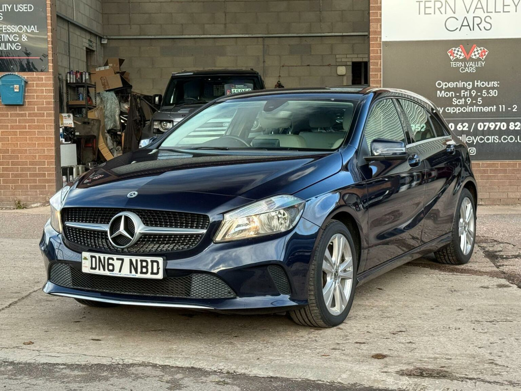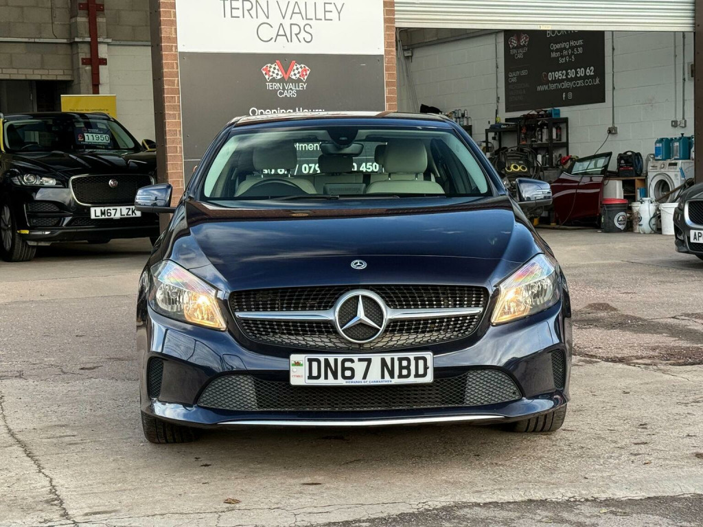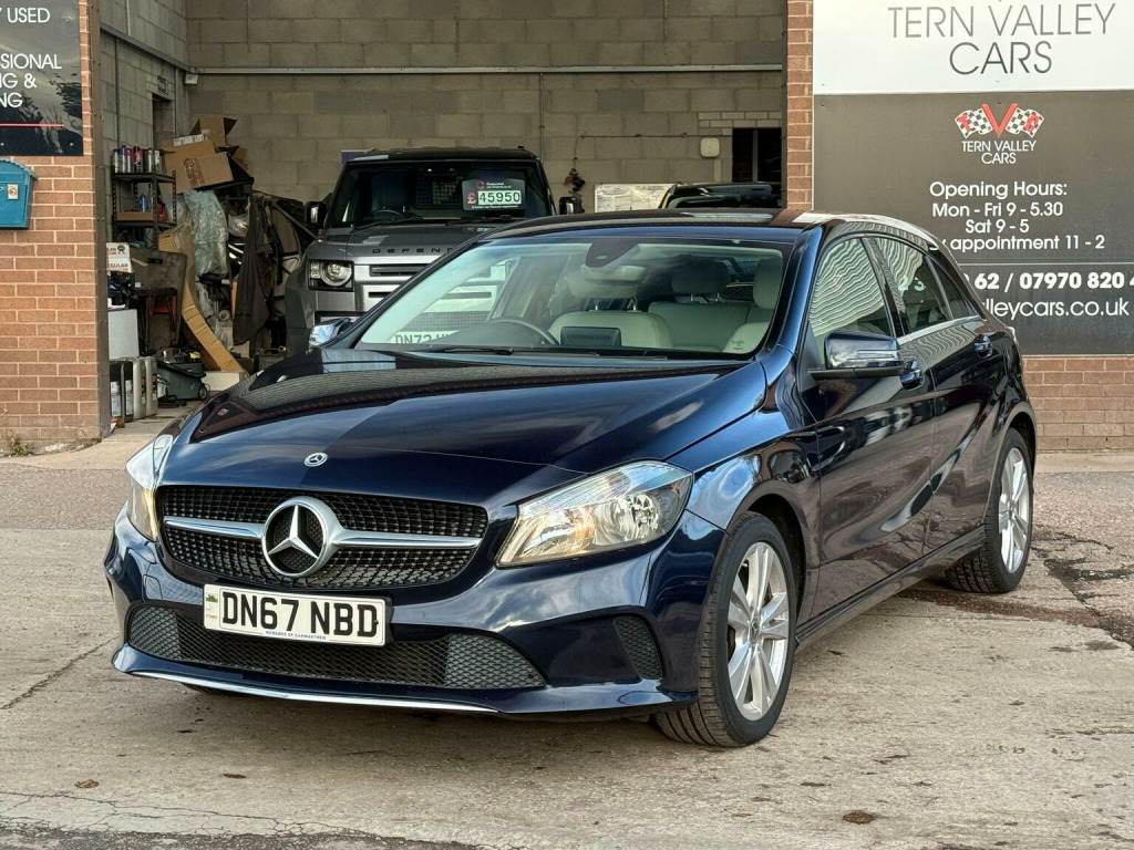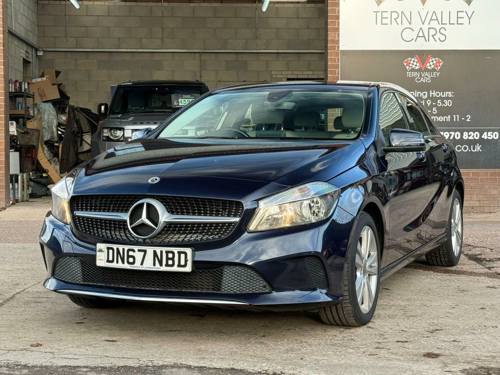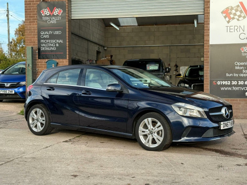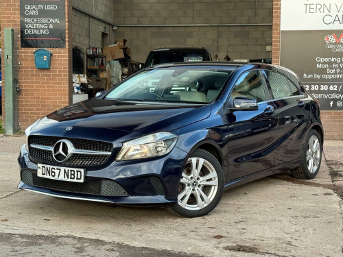 JUST ARRIVED, a beautiful low mileage car with outstanding light grey interior and unmarked bodywork. More images when valeted! This 2017 Mercedes Benz A Class A180d Sport boasts an exceptionally low mileage of just 54,950 miles for its age, complemented by a full service history and a clear vehicle history check. This Euro 6 compliant 1.5L diesel engine offers impressive fuel economy of 74 mpg, making it an economical choice. The Sport trim level includes desirable features such as the Garmin Map Pilot Navigation System, a 180 degree reversing camera with parking assistance, THERMOTRONIC luxury automatic climate control for two zones, and automatic headlamp activation. With MOT valid until September 2026 and a 6 month warranty, this A Class provides peace of mind.  We sell with 6 Months Warranty Wise Gold Warranty. 2 Keys & all handbooks on this smoker free lovely car. 12 Months AA Breakdown Membership included. AA Driveaway 5 Day Insurance available - Only £44.99 NEED FINANCE? No Problem - SAF Registered. Simply click Apply for finance on our website www.ternvalleycars.co.uk. We are a FCA registered dealership. Prime or subprime finance. Excellent finance rates starting from as low as 11.1% APR (Subject to status and terms and conditions) which can be altered on deposit. For any further information and details to view please contact David, who has over 50 years personal Motor Trade experience. Delivery to your door is available, please ask for a quote. The generous boot space ensures practicality for everyday needs and longer journeys. This Mercedes Benz A Class stands out with its low CO2 emissions, indicating a more environmentally conscious performance compared to many similar vehicles. The combination of its efficient diesel engine, advanced climate control, and helpful parking aids makes this A180d Sport a well rounded and appealing option.