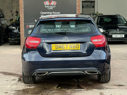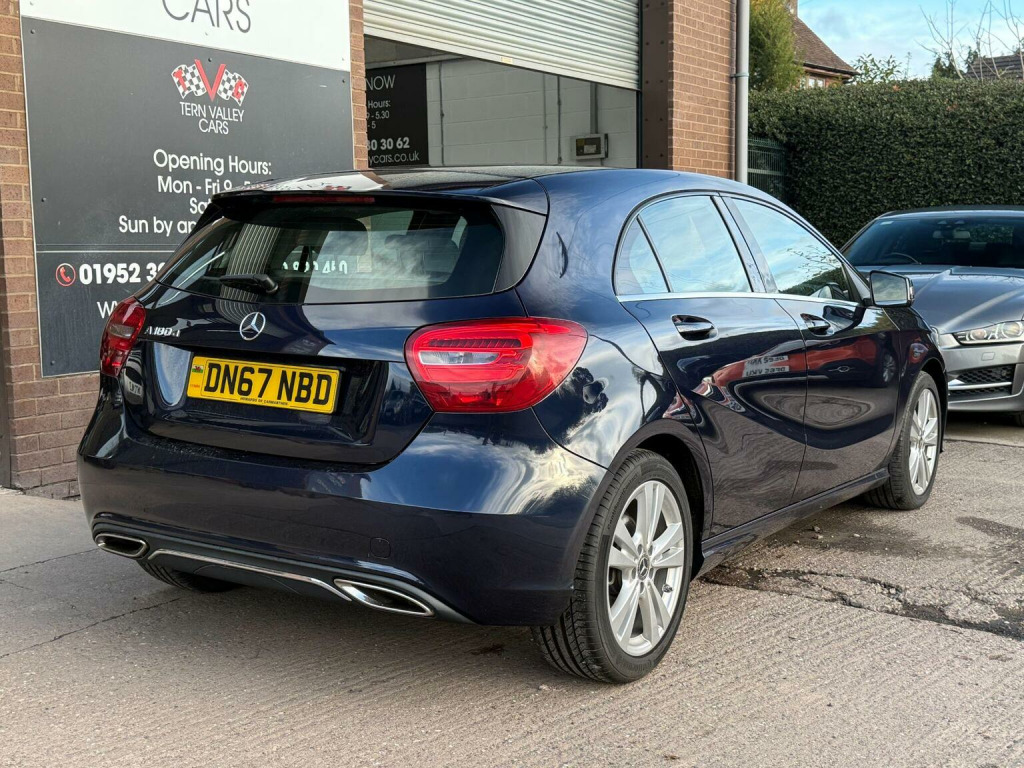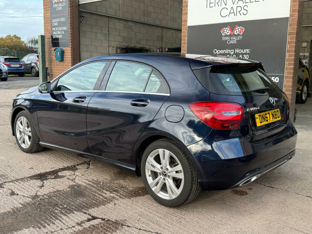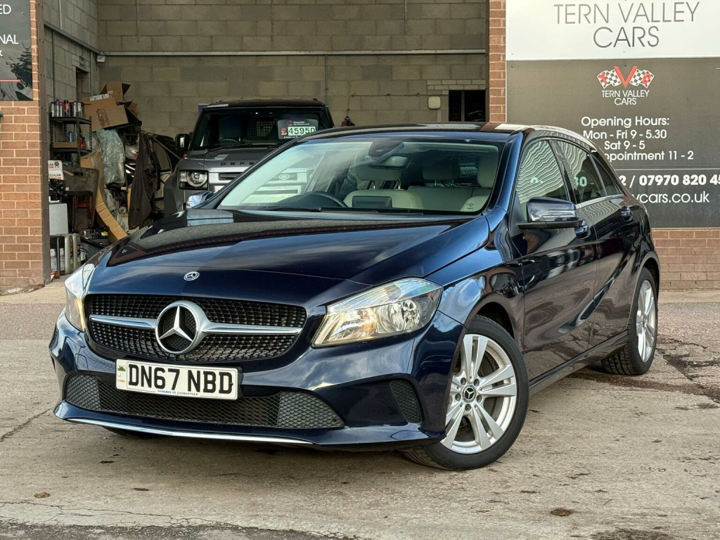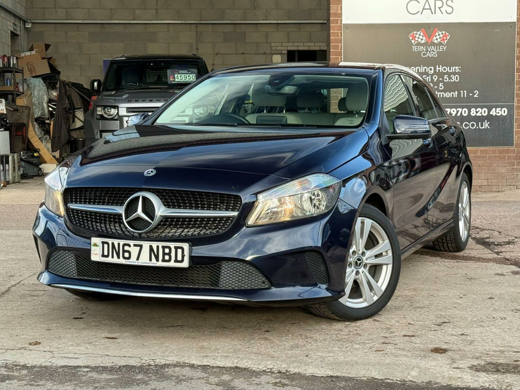JUST ARRIVED, a beautiful low mileage car with outstanding light grey interior and unmarked bodywork. More images when valeted! This 2017 Mercedes Benz A Class A180d Sport boasts an exceptionally low mileage of just 54,950 miles for its age, complemented by a full service history and a clear vehicle history check. This Euro 6 compliant 1.5L diesel engine offers impressive fuel economy of 74 mpg, making it an economical choice. The Sport trim level includes desirable features such as the Garmin Map Pilot Navigation System, a 180 degree reversing camera with parking assistance, THERMOTRONIC luxury automatic climate control for two zones, and automatic headlamp activation. With MOT valid until September 2026 and a 6 month warranty, this A Class provides peace of mind.  We sell with 6 Months Warranty Wise Gold Warranty. 2 Keys & all handbooks on this smoker free lovely car. 12 Months AA Breakdown Membership included. AA Driveaway 5 Day Insurance available - Only £44.99 NEED FINANCE? No Problem - SAF Registered. Simply click Apply for finance on our website www.ternvalleycars.co.uk. We are a FCA registered dealership. Prime or subprime finance. Excellent finance rates starting from as low as 11.1% APR (Subject to status and terms and conditions) which can be altered on deposit. For any further information and details to view please contact David, who has over 50 years personal Motor Trade experience. Delivery to your door is available, please ask for a quote. The generous boot space ensures practicality for everyday needs and longer journeys. This Mercedes Benz A Class stands out with its low CO2 emissions, indicating a more environmentally conscious performance compared to many similar vehicles. The combination of its efficient diesel engine, advanced climate control, and helpful parking aids makes this A180d Sport a well rounded and appealing option.