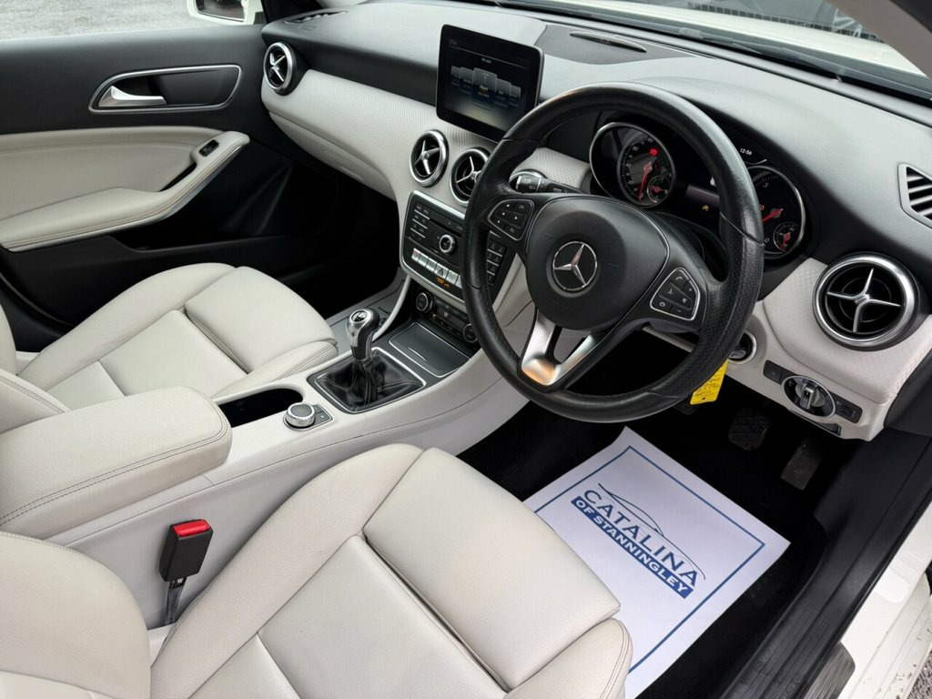 Mercedes-Benz A-Class A180d Sport Executive – Reverse Camera | Rare Cream Leather | Low Miles Diesel | Manual | Euro 6 | 109 PS | 56,546 Miles | MOT Until 20-01-2027 This Mercedes-Benz A180d Sport (Executive) is a smart, low-mileage example of Mercedes' premium and economical hatchback. With just 56,546 miles from new, only two former keepers, and a long MOT until January 2027, it offers excellent value in a stylish package. Powered by the efficient 1.5-litre diesel engine producing 109 PS, it delivers smooth performance with outstanding fuel economy, while remaining fully Euro 6 compliant and ideal for modern clean-air zones. Finished in white with a rare cream leather interior, this Executive model stands out from the crowd and offers a premium feel inside and out. It comes well equipped with satellite navigation, Bluetooth, alloy wheels, and a reverse camera for added convenience. A clean, great-spec example of the Mercedes-Benz A-Class Executive — combining low running costs, comfort, and standout interior style Vehicle Preparation & Warranty Every vehicle is supplied with a minimum of 6 months MOT. If the remaining MOT is less than 6 months at point of sale, the car will receive a FREE 12-month MOT prior to collection. All vehicles are fully up to date with servicing where required. We include a FREE 3-month engine warranty, provided on a return-to-base basis. For additional peace of mind, we offer comprehensive nationwide warranty upgrades cov 17in Alloy Wheels - 5-Twin-Spoke Design, ABS - Anti-Lock Braking System with BAS , ATTENTION Assist, Active Bonnet - Pedestrian Safety Measur, Active Braking Assist, Adaptive Brake Assist with Hold Function, Adaptive Brake Lights, Air Vents with Surround and Cruciform No, Airbags - Dual Stage - Driver and Front , Airbags - Head and Sidebags - Driver and, Airbags - Windowbags for Driver and Fron, Alarm System with Immobiliser and Interi, Audio 20 Radio-CD-MP3 Compatibility, Automatic Child Seat Recognition Sensor, Beltline Strips - Chrome, Bodystyling - Side Skirts - Body-Coloure, Brake-Pad Wear Warning Indicator, Bumpers - Body Coloured, Centre Armrest - Front with Stowage, Childproof Locks