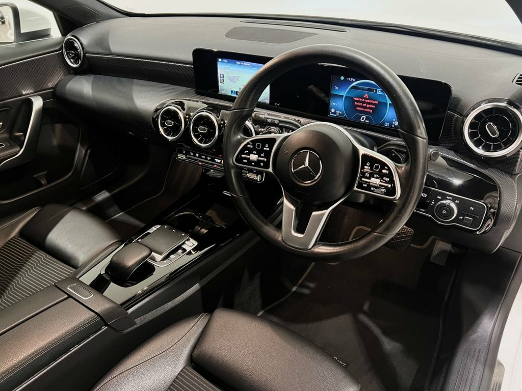 Finished in crisp Polar White, this Mercedes-Benz A180d Sport Hatchback is a superb example of the stylish and efficient premium hatchback. With its smooth 7G-DCT automatic gearbox and refined diesel engine, it delivers an excellent balance of performance, comfort and economy, making it ideal for both daily commuting and longer motorway journeys. The Sport trim gives the A-Class a sharp, modern stance. It sits on 17" 10-spoke alloy wheels finished in vanadium silver, complemented by subtle chrome detailing along the window line. LED High Performance headlamps with integrated LED daytime running lights provide a distinctive look while also offering excellent visibility in all conditions. Inside, the cabin feels both sporty and high quality. The black ARTICO man-made leather and Fléron fabric upholstery is hard-wearing and comfortable, paired with a leather-trimmed multifunction sports steering wheel featuring silver chrome detailing. Dark carbon fibre-look trim adds a contemporary finish, while two-zone automatic climate control ensures a comfortable environment for both driver and passengers. Technology and usability are strong points of this A-Class. The central infotainment system provides Bluetooth connectivity, DAB radio and media streaming, all controlled via the steering wheel and centre console. Cruise control makes motorway driving relaxed, and parking sensors help with everyday manoeuvres around town. The hatchback layout offers good rear passenger spa 17in Alloy Wheels - 10-Spoke - Painted i, ABS - Anti-Lock Braking System with BAS , ATTENTION Assist, Active Bonnet - Pedestrian Safety Measur, Active Brake ASSIST, Active Lane Keeping Assist, Adaptive Brake Assist with Hold Function, Adaptive Brake Lights, Air Conditioning - THERMOTRONIC Luxury A, Air Vents with Surround and Cruciform No, Airbag - Kneebag for Driver, Airbags - Dual Stage - Driver and Front , Airbags - Windowbags for Driver and Fron, Alarm System with Immobiliser and Interi, Automatic Child Seat Recognition Sensor, Beltline Strips - Chrome, Bodystyling - Side Skirts - Body-Coloure, Brake-Pad Wear Warning Indicator, Bumpers - Body Coloured, Centre Armrest - Front with Stowage