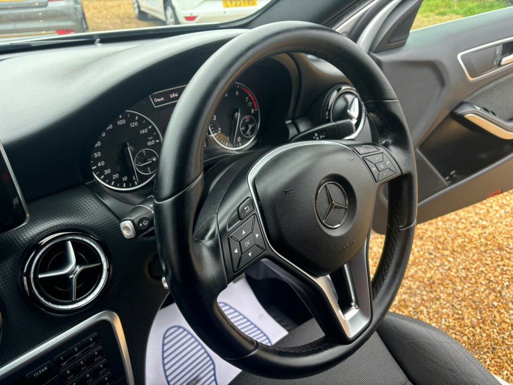 Comes with 1 Year MOT - 6 Month Warranty - Serviced on sale We offer finance from £0 deposit please contact our office for more information ** This 2013 Mercedes-Benz A Class 1.6 A180 BlueEfficiency SE Hatchback with 68,000 miles is a reliable, fuel-efficient car perfect for city driving as it is ULEZ compliant. With 5 seats and 5 doors, this petrol hatchback has a MOT that expires on 08/07/2026. The Euro 6 (s/s) engine with 122 ps offers a smooth driving experience, and the 16in Alloy Wheels and body-colored bumpers and door handles give it a sleek look. Other features include electrically adjustable and heated door mirrors with LED indicators, as well as electric windows in the front and rear. This well-maintained vehicle is a great option for anyone looking for a practical and stylish car., We offer 1 Year MOT, 1 Year Warranty & service included on all our stock. Finance is available on all our stock please contact our Office. in alloy wheels - 10 spoke design, bumpers - body coloured, door handles - body coloured, door mirrors - electrically adjustable and heated with led indicators, electric windows - front and rear, exhaust system - no visible tailpipe tips, radiator grille - 2 louvres body coloured, rear windscreen - heated with timer control, side skirts - body coloured, tirefit tyre sealant kit, 5.8in colour display, audio 20 radio-cd, aux-in socket, bluetooth interface for hands-free telephone, pre-wiring for becker map pilot navigation system, speakers x6, telephone keypad, usb interface, abs - anti-lock braking system, asr - acceleration skid control, active bonnet - pedestrian safety which detects an impact and raises bonnet, adaptive brake lamps, adaptive brake system with hold function-hill start assist, airbags - drivers kneebag, airbags - dual stage - driver, airbags - dual stage - front passenger, airbags - front sidebags, airbags - head for driver and passenger, airbags - windowbags, alarm system, automatic child seat recognition sensor, bas - brake assist, collision prevention assist, esp - electronic stability programme, electric parking brake, electronic key with chrome surround, first aid kit, isofix and top-tether child seat fixing points in rear, immobiliser, pedestrian detection system, rear windscreen wiper, remote central locking, seat occupancy sensor - front passenger seat, warning triangle, attention assist, comfort suspension, fluid level warning indicator - oil-coolant-washer fluid, headlight failure indicator, multi-function colour display with trip computer, outside air temperature gauge, power steering - speed sensitive, tyre pressure loss warning system, air conditioning, air vents with chrome surround, beltline strips - chrome, centre armrest - front with storage, controller on centre console with chrome surround, cup holder - twin, direct select shift lever with steering wheel shift paddles, front footwell lighting, front seat comfort package, front seats - manually adjustable, front doors with signal lights, gear shift lever - leather trimmed with chrome highlights, head restraints - manually adjustable - front and rear, headlining - black cloth, illuminated glove compartment, load securing rings in luggage compartment, luggage compartment cover, luggage compartment light, pollen filter, rear seats - split folding 1-3 2-3, roof lining - black, seats - cushion angle adjustment for front, seats - height adjusters, sports seats with integrated head restraints, steering column - manually adjustable for height and reach, steering wheel - multi-function, steering wheel - sports-3-spoke-multifunction-trimmed nappa leather-perforated leather grip, storage compartment under boot floor, trim - matrix effect, daytime running lights, halogen headlights, headlamp assist - automatic headlamp activation, high level third brake light - led
