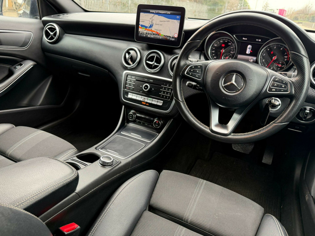 This 2018 Mercedes Benz A Class A180 Sport Edition boasts a clear vehicle history, offering peace of mind for its next owner. Powered by a 1.6 litre Euro 6 compliant petrol engine, this Sport Edition model combines efficiency with performance, achieving 0-62mph in just 8.6 seconds. Notable features include Headlamp Assist for automatic light activation, a 180 degree reversing camera with parking guidelines for effortless manoeuvring, and the Audio 20 system with Bluetooth connectivity. Smartphone integration with both Android Auto and Apple CarPlay is also included, alongside THERMOTRONIC luxury automatic climate control for a comfortable cabin environment.The A180 Sport Edition stands out with its impressive fuel economy, returning a highlight of 52 miles per gallon, which indicates it is more economical than many similar vehicles. Furthermore, its low insurance group rating suggests lower running costs compared to other cars in its class. This model also offers a generous boot space, making it a practical choice for everyday use and longer journeys. tico leather-maringa fabric - black with white contrast stitching, 17in alloy wheels - 5-twin-spoke design painted black with high-sheen finish, abs - anti-lock braking system with bas - brake assist, attention assist, active bonnet - pedestrian safety measure which detects an impact and raises bonnet by 65mm, active braking assist, adaptive brake assist with hold function and hill start assist, adaptive brake lights, air vents with surround and cruciform nozzle in silver chrome, airbags - dual stage - driver and front passenger, airbags - head and sidebags - driver and front passenger, airbags - windowbags for driver and front passenger, alarm system with immobiliser and interior protection - thatcham category 1, audio 20 radio-cd-mp3 compatibility, automatic child seat recognition sensor, beltline strips - chrome, bodystyling - side skirts - body-coloured, brake-pad wear warning indicator, bumpers - body coloured, centre armrest - front with stowage, childproof locks - manually operated for rear doors and electrically operated for rear power windows, controller on centre console with chrome surround, crash-responsive emergency lighting, cruise control with limiter, cup holder - double - front, direct select shift lever with steering wheel shift paddles, direction indicators with lane-changer function, door handles - body coloured, door mirrors - electrically adjustable and heated with integrated led indicators, drivers kneebag, dynamic select with a choice of driving modes - eco-comfort-sport and individual, esp - electronic stability programme with asr - acceleration skid control, esp curve dynamic assist, electric parking brake, electric windows - 4, electronic key - chrome surround, exhaust system - twin trapezoidal tailpipes in polished stainless steel, first aid kit and warning triangle, fluid level warning indicator for fuel - oil - coolant and washer fluid, footwell lighting - front and rear, garmin map pilot navigation system, glass - rear windscreen - heated with timer control, glove compartment - illuminated, headlamp assist - automatic headlamp activation, high level third brake light - led, isofix and top-tether child seat fixing points in rear - two outer seats, illuminated front door sills with mercedes-benz lettering, illumination - storage compartment, instrument cluster with four analogue dials and needles suspended in six-o-clock position, keyless-go starting function, led high performance headlamps with integrated led daytime running lights, led tail lights, light failure indicator, lighting in stowage compartment and vanity mirrors, luggage compartment cover, media display - 8in, media interface, mercedes connect me, outside temperature gauge, power steering - speed sensitive, privacy glass, radiator grille - diamond in black with one silver painted louvre and chrome insert, radio aerial roof spoiler, rain-sensing windscreen wipers with two sensitivity settings, reading lights and console light in front and rear, rear fog light, rear seats - split folding 1-3 2-3, rear view mirror - additional lighting, rear windscreen wiper, remote central locking and crash sensor with emergency opening function, reversing camera with parking guidelines - 180 degree view, roof lining - black, seat belts - black, seat belts - rear three-point - 3, seat belts reminder - front and rear, seat comfort package, seat occupancy sensor - front passenger seat, seats - front cushion length adjustment, seats - front manually adjustable, seats - sports, service indicator assyst, smartphone integration, sports seats with integrated head restraints, steering column - manually adjustable for height and reach, steering wheel - 3-spoke multi-function - trimmed in leather with perforated leather in grip area, storage compartment beneath load compartment floor, suspension - comfort, thermotronic luxury automatic climate control - two-zone with display, tirefit tyre-sealant kit, trim - black chequerboard, trip computer in multi-function display, tyre pressure monitoring system