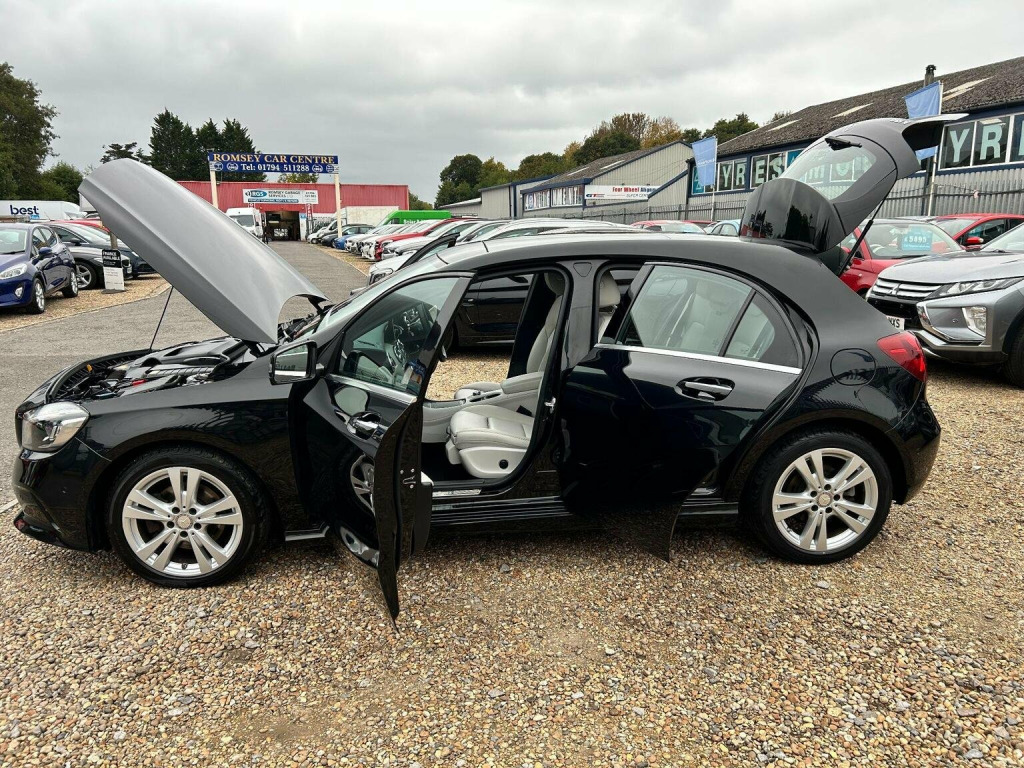 Romsey Car Centre are delighted to offer this Lovely Mercedes A Class A180 SPORT PREM + Automatic, black, with complementing cream leather seats. With loads of features, listed below, this Quality Mercedes comes with a service history done at 7,153 miles, 25,432 miles, 32,000 miles, 37,000 miles and 42,721 miles up to date with a long Mot. Only £165 road Tax. Features include Sunroof, Reverse Camera, Front and Rear parking sensors, electric adjustable front seats with memory, Heated Front seats, Cream Leather Trim, Air conditioning, Dual climate Control, Bluetooth, Auto lights, USB 6 speed manual gear-box, Electric mirrors, 18 Alloy wheels.