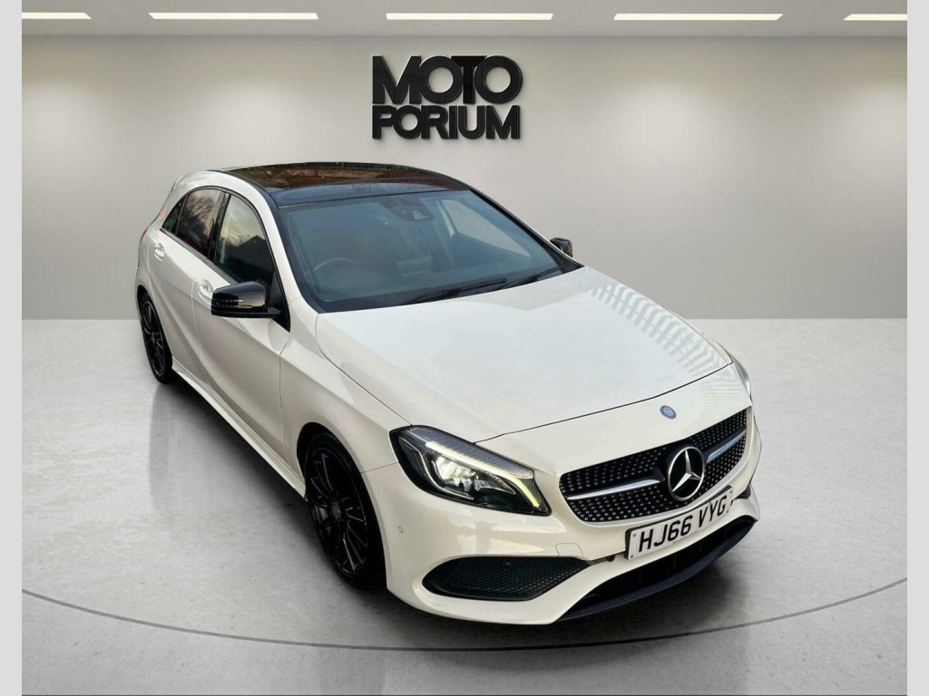 MERCEDES A CLASS - A200 -1.6AMG LINE PREMIUM PLUS MODEL - AUTOMATIC - DONE 83905 MILES IN WHITE - WITH HALF LEATHER INTERIOR - 6 MAIN DEALER SERVICE HISTORY RECORDS - FRESH PRE SALE SERVICE PROVIDED - LONG MOT - PANORAMIC ROOF - ELECTRIC ROOF BLIND - HEATED SEATS - ELECTRIC DRIVERS SEAT - SAT NAV - REVERSE CAMERA - FRONT AND REAR PARKING SENSORS - CRUISE CONTROL - CLIMATE CONTROL - AIR CON - POWERFOLD SIDE MRRORS - MULTI FUNCTION STEERING WHEEL -BLUETOOTH - BLACK MULTISPOKE ALLOY WHEELS - MEDIA CONNECTION -AUDI (CD) - FINANCE AVAILABLE - WARRANTY PROVIDED - NATIONWIDE DELIVERY SERVICE AVAILABLE - VIEW MANY MORE CARS ON WWW.MOTOPORIUM.COM. 18in Alloy Wheels - AMG 5-Twin-Spoke Design - Painted in Titanium Grey with a High Sheen Finish, 8-inch Tablet-Style Colour Display, ABS - Anti-Lock Braking System, AMG Bodystyling - Front and Rear Apron, AMG Bodystyling - Side Skirts, ASR - Acceleration Skid Control, ATTENTION Assist, Active Bonnet - Pedestrian Safety Measure which Detects an Impact and Raises Bonnet by 65mm, Active Park Assist with Parktronic, Adaptive Brake Assist with Hold Function and Hill Start Assist, Adaptive Brake Lights, Air Vents with Black Surround - Petrol Green Insert and Cruciform Nozzle, Airbag - Drivers Knee, Airbag - Dual-Stage - Front Passenger, Airbags - Dual-Stage - Driver, Airbags - Head for Driver and Front Passenger, Airbags - Windowbags for Driver and Front Passenger, Alarm System with Interior Protection, Ambient Lighting - 12 Colours, Ambient Lighting - Interior Door Handles, Ambient Lighting in Front and Rear Headrests, Audio 20 Radio-CD-MP3 Compatibility, Auto Dimming Rear View Mirror, Automatic Child Seat Recognition Sensor, BAS - Brake Assist, Beltline Strips - Chrome, Bluetooth, Brake Calipers - Mercedes-Benz Lettering on Front, Brake-Pad Wear Warning Indicator, Brushed Stainless Steel Sports Pedals with Rubber Studs, Bumpers - Body-Coloured, Centre Armrest - Front with Storage, Childproof Locks - Manually Operated for Rear Doors and Electrically Operated for Rear Power Windows, Collision Prevention Assist Plus, Controller on Centre Console with Chrome Surround, Crash Sensor with Emergency Opening Function for Doors, Crash-Responsive Emergency Lighting, Cruise Control with SPEEDTRONIC Variable Speed Limiter, Cup Holder - Twin, Direct Select Gearshift Lever, Door Handles - Body-Coloured, Door Mirrors - Body Coloured, Door Mirrors - Drivers Automatically Dimming, Door Mirrors - Electrically Folding, Door Mirrors - Integrated LED Indicators, Door Sill Panels - Mercedes-Benz Lettering - Illuminated, Dynamic Select with a Choice of Driving Modes - ECO-Comfort-Sport and Individual, ESP - Electronic Stability Programme, ESP Cornering Dynamics Assist, Electric Parking Brake, Electronic Key - Chrome Surround, Exhaust System - Twin Trapezoidal Tailpipes in Polished Stainless Steel, First Aid Kit, Floor Mats - Red Stitched Edging - AMG Lettering, Fluid Level Warning Indicator for Fuel - Oil - Coolant and Washer Fluid, Footwell Lighting - Front and Rear, Four-Way Lumbar Support, Glove Compartment - Illuminated, Headlight Assist - Automatic Headlight Activation, Headlights - Halogen, Headlights - High Beam Assist, Headlights - Integrated Daytime Running Lights, Headlights - Integrated Daytime Running Lights - LED, Headlights - LED, Heated Rear Window with Timer Control, High Level Third Brake Light - LED, ISOFIX and Top-Tether Child Seat Fixing Points in Rear - Two Outer Seats, Illuminated Storage Compartment in Centre Console, Illuminated Vanity Mirrors, Immobiliser, Indicators - Lane Change Function, Instrument Cluster with 4 Analogue Dials and Needles Suspended in Six-o-Clock Position, Integrated Head Restraints, Keyless Go, Light Failure Indicator, Load-Securing Rings in Luggage Compartment, Luggage Compartment Cover, Media Interface, Mercedes Me Connect, Outside Temperature Gauge, Panoramic Sliding Sunroof, Parking Sensor - Front, Parking Sensor - Rear, Pre-Wiring for Garmin Map Pilot Navigation System, Premium Plus Package, Radiator Grille - Diamond with Pins in Chrome and Silver Louvre with Chrome Insert, Radio Aerial Roof Spoiler, Rain-Sensing Windscreen Wipers, Reading Lights - Front and Rear, Rear Seats - Split Folding 1-3 - 2-3, Rear Windscreen Wiper, Remote Central Locking, Reversing Camera with Parking Guidelines - 180 Degree View, Roof Lining - Black, SD Memory Card Slot, Satellite Navigation - Garmin Map Pilot, Seat Belt Reminder - Front and Rear, Seat Comfort Package, Seat Occupancy Sensor - Front Passenger Seat, Seats - Cushion Angle Adjustment for Front, Seats - Front Cushion Length Adjustment, Seats - Front Electrically Ad.