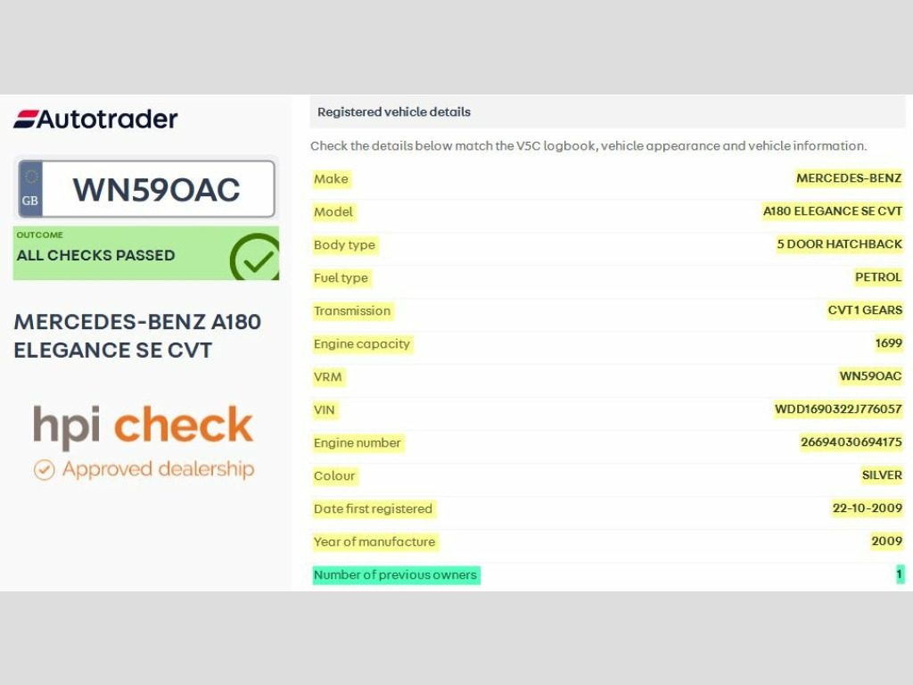 Buy with confidence from an Award Winning Independent Mercedes-Benz Specialist! We are delighted to offer our beautiful Factory Ordered Mercedes A Class A180 "Elegance SE" Automatic 1.7 Petrol finished in the highly popular "Polar Silver" and fitted with an Unmarked Nappa Alpaca Leather upholstery with matching door cards. This is the A Class you should be buying - Super Low Miles and in Superb Condition! Originally supplied to a Mr and Mrs Holt by Mercedes-Benz of Swindon, this Mercedes-Benz has been driven extremely sparingly, having only covered 31,000 miles since 2009. This Mature Couple Owned vehicle is a "Facelift Model" and is supplied with its Original Manuals, Amazing Full Mercedes-Benz and Specialist Service History Record, Two Keys, MOT until February 2027, HPI Clearance Certificate and a Full and current V5 Logbook. The Service History is spectacular, having been Serviced 17 times (9 Mercedes-Benz Visits) with the most recent Service performed at 31,774 in February 2026. Factory Ordered Specification; Nappa Leather Seats, Heated and Electric Seats, Automatically Dimming Interior / Exterior Mirrors, Cruise Control, Alloy Wheels, Power Folding Electric Mirrors, Active Parking Sensors (Front / Rear Acoustic and Visual), Audio 20 Media System; Bluetooth Telephone, CD Player, Radio and Auxiliary Media Input. Anti Theft Alarm System, IsoFix Mounts in Rear, Air Conditioner, Trunk Covering, Heighten Theft Protection, Theft Protection P Active Park Assist, Airbags - Rear Sidebags, Alloy Wheels-16in 7-Twin Spoke Design, Comfort Package, Heated Front Seats, Heated Screen Wash System, Luxury Climate Control, Luxury Package 5-Doors, Metallic Paint, Telephone Pre-Wiring/Hands-Free Facility, Windowbags