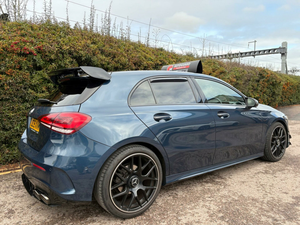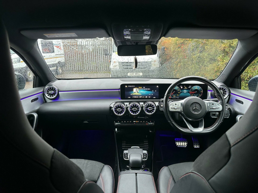 Here we have a lovely Mercedes-Benz A Class 2.0 A200d AMG Line (Premium) which has only covered around 59,000 miles backed with full service history (Main dealer). This will come with a 12 Month MOT. This has had a full A45s bodykit put on which gives it that meaner look. It has got the premium features such as Reverse Camera, Extended Screen, Heated Seats, Isofix and much more.This 2019 Mercedes Benz A Class A200d AMG Line (Premium) boasts a clear vehicle history, offering you peace of mind. Powered by an efficient 2.0L Euro 6 diesel engine, this model combines sophisticated design with practical features. The AMG Line trim enhances its sporty appeal, while the Premium package includes convenient keyless entry. Inside, you'll find the Advanced Connectivity Package, seamlessly integrating Android Auto and Apple CarPlay, alongside wireless phone charging. For added safety and ease, the Driving Assistance Package provides adaptive cruise control and blind spot assistance, complemented by an advanced navigation system and THERMOTRONIC luxury automatic climate control for a comfortable journey.Experience impressive performance with this A Class, accelerating from 0 to 62mph in a swift 8.1 seconds, demonstrating its dynamic capability. This acceleration figure highlights how this Mercedes Benz offers a more engaging driving experience compared to many similar vehicles. Furthermore, the generous boot space ensures you have ample room for luggage or shopping, making it a versatile choice for everyday life and longer trips., vanced navigation package, artico leather-dinamica microfibre - black with red contrast stitching, trim - light longitudinal-grain aluminium, advanced connectivity package, driving assistance package, 18in alloy wheels - amg 5-twin-spoke design - painted in titanium grey with a high sheen finish, abs - anti-lock braking system with bas - brake assist, amg bodystyling - front and rear apron and side skirts, attention assist, active bonnet - pedestrian safety measure which detects an impact and raises bonnet by 65mm, active brake assist, active lane keeping assist, adaptive brake assist with hold function and hill start assist, adaptive brake lights, air conditioning - thermotronic luxury automatic climate control - two-zone with display, air vents with surround and cruciform nozzle in silver chrome, airbag - kneebag for driver, airbags - dual stage - driver and front passenger, airbags - head and sidebags - driver and front passenger, airbags - windowbags for driver and front passenger, alarm system with immobiliser and interior protection - thatcham category 1, automatic child seat recognition sensor, beltline strips - chrome, bodystyling - side skirts - body-coloured, brake calipers - mercedes-benz lettering on front, brake-pad wear warning indicator, brushed stainless steel sports pedals with rubber studs, bumpers - body coloured, centre armrest - front with stowage, childproof locks - manually operated for rear doors and electrically operated for rear power windows, chrome weather strip, crash-responsive emergency lighting, cruise control with limiter, cup holder - double - front, dab digital radio tuner, diamond radiator grille with pins in chrome - silver-painted louvre and insert in chrome, direct steer speed-sensitive power steering, door handles - body coloured with a chrome accent, door mirrors - electrically adjustable and heated with integrated led indicators, dual bluetooth interface - 2 usb ports - type c, dynamic select with a choice of driving modes - eco-comfort-sport and individual, esp - electronic stability programme with asr - acceleration skid control, esp curve dynamic assist, electric parking brake, electric windows - 4, exhaust system - twin trapezoidal tailpipes in polished stainless steel, first aid kit and warning triangle, floor mats - red stitched edging - amg lettering, footwell lights in front, front door sills with mercedes-benz lettering, glass - rear windscreen - heated with timer control, glove compartment - illuminated, hard-disk navigation, headlamp assist - automatic headlamp activation, hey mercedes - voice activation, high level third brake light - led, isofix and top-tether child seat fixing points in rear - two outer seats, instrument cluster - fluid level warning indicator for fuel - oil - coolant and washer fluid, instrument cluster - outside temperature display, instrument cluster - service indicator assyst, instrument cluster - trip computer in multi-function display with current fuel consumption indicator, interior lighting - cup holder - stowage compartment lighting, interior lighting - handle recess - closing handle - front-rear-left-right, interior lighting - oddments tray, interior lighting - reading lamp in rear in support plate - rear-left-right, interior lighting - reading lamps - front-left-right - console downlighter, interior lighting - signal exit lamp - front-left-right, interior lighting - signal and ambient lamp, interior lighting - touchpad, interior lighting - vanity lights - front-left-right, keyless-go starting function, led high performance headlamps with integrated led daytime running lights, led tail lights, light failure indicator, live traffic information, luggage compartment cover, mbux multimedia system, mercedes me connect - standard services, pre-installation for mercedes-benz link, premium package, radio aerial roof spoiler, rain-sensing windscreen wipers with two sensitivity settings, rear fog light, rear windscreen wiper, remote central locking and crash sensor with emergency opening function, reversing camera with parking guidelines - 180 degree view, roof lining - black, seat belts - black, seat belts - rear three-point - 3, seat belts reminder - front and rear, seat comfort package, seat occupancy sensor - front passenger seat, seats - front cushion length adjustment, seats - front manually adjustable, seats - rear seat backrests - split folding 1-3 - 2-3, speed limit assist, sports seats with in