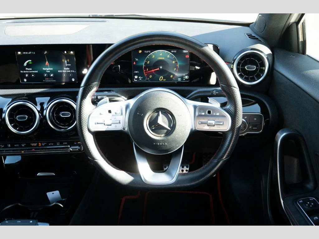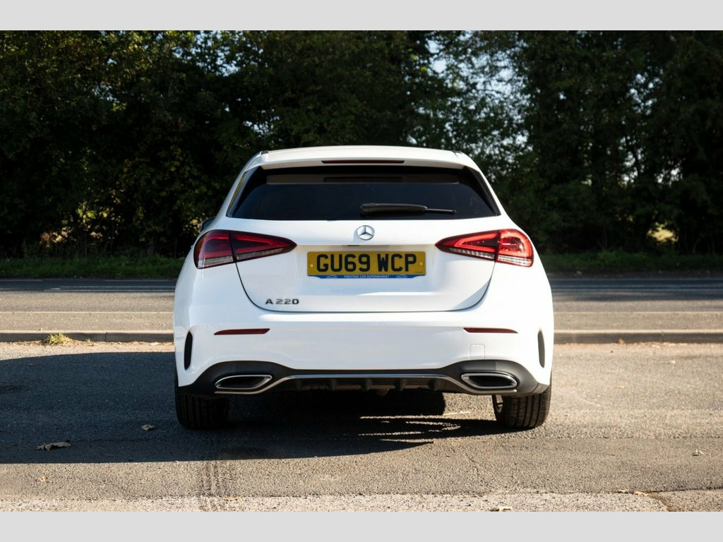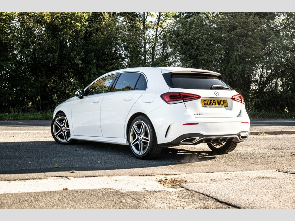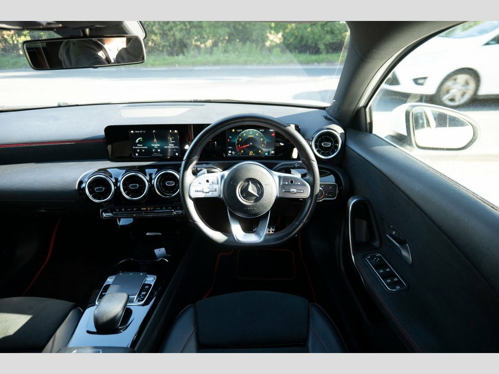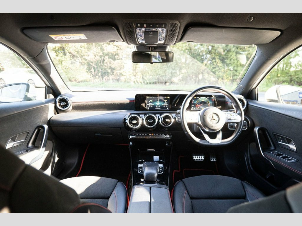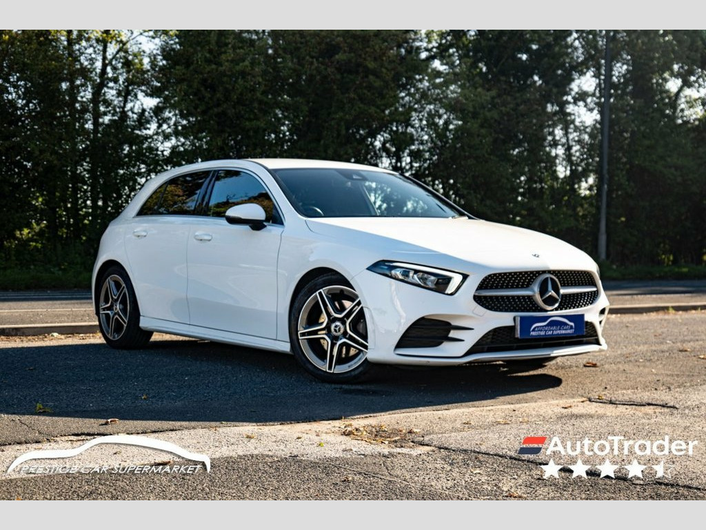Prestige Car Supermarket in York presents this highly efficient and stylish 2019 Mercedes-Benz A-Class A220 AMG Line Hatchback. Finished in non-metallic Polar White and featuring a comfortable Black Artico Leather-Dinamica Microfibre interior with Red Contrast Stitching, this automatic petrol hatchback offers a refined and responsive driving experience. It rides on 18in AMG 5-Twin-Spoke Design alloy wheels with a High Sheen Finish and features AMG Bodystyling with a Diamond Radiator Grille and Twin Trapezoidal Tailpipes. Illumination is provided by LED High Performance Headlamps and LED Tail Lights. Step inside the sporty and well-appointed cabin to find Sports Seats with integrated head restraints, a 3-Spoke Multi-Function Steering Wheel with galvanised gearshift paddles, and Two-Zone Automatic Climate Control. Technology is comprehensive with a 7in Media Display touchscreen, Hard-Disk Navigation, and an MBUX Multimedia System with "Hey Mercedes" Voice Activation. Convenience is a priority with a Reversing Camera, a Light and Sight Package, and Rain-Sensing Windscreen Wipers. This model also includes Privacy Glass. Safety and driver assistance systems are extensive, including Active Brake Assist, Active Lane Keeping Assist, and a Tyre Pressure Monitoring System (TPMS), ensuring a secure and confident drive. Artico Leather-Dinamica Microfibre - Bla, Polar White, 18in Alloy Wheels - AMG 5-Twin-Spoke Des, ABS - Anti-Lock Braking System with BAS , AMG Bodystyling - Front and Rear Apron, ATTENTION Assist, Active Bonnet - Pedestrian Safety Measur, Active Brake ASSIST, Active Lane Keeping Assist, Adaptive Brake Assist with Hold Function, Adaptive Brake Lights, Air Conditioning - THERMOTRONIC Luxury A, Air Vents with Surround and Cruciform No, Airbag - Kneebag for Driver, Airbags - Dual Stage - Driver and Front , Airbags - Windowbags for Driver and Fron, Alarm System with Immobiliser and Interi, Automatic Child Seat Recognition Sensor, Beltline Strips - Chrome, Bodystyling - Side Skirts - Body-Coloure,