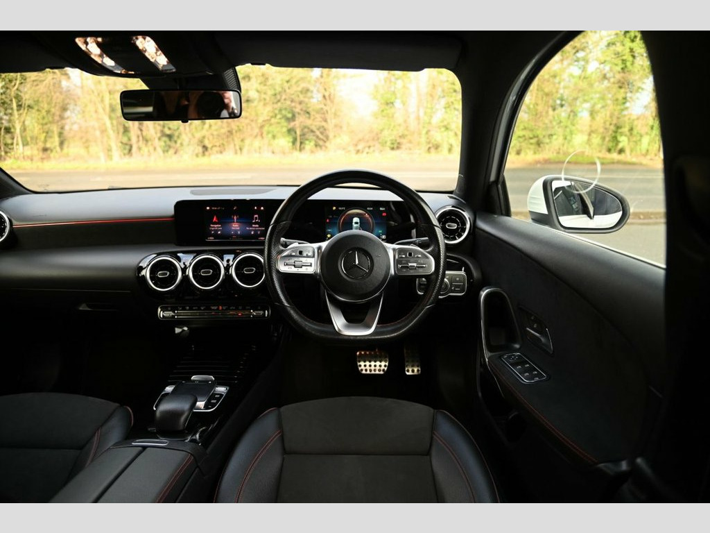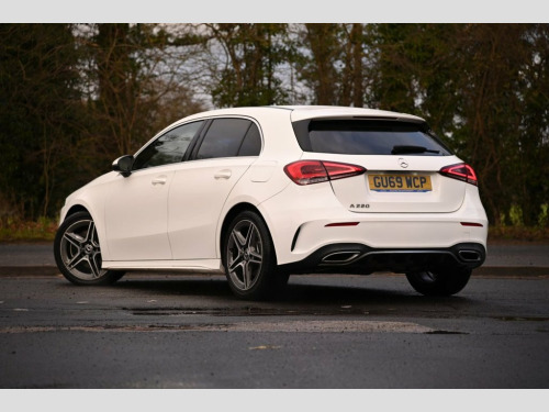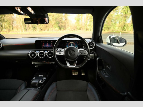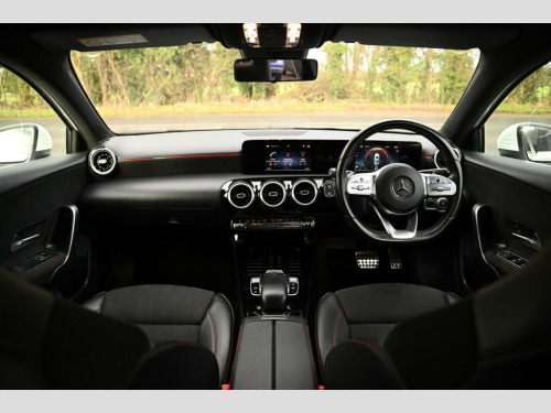 Prestige Car Supermarket in York presents this highly efficient and stylish 2019 Mercedes-Benz A-Class A220 AMG Line Hatchback. Finished in non-metallic Polar White and featuring a comfortable Black Artico Leather-Dinamica Microfibre interior with Red Contrast Stitching, this automatic petrol hatchback offers a refined and responsive driving experience. It rides on 18in AMG 5-Twin-Spoke Design alloy wheels with a High Sheen Finish and features AMG Bodystyling with a Diamond Radiator Grille and Twin Trapezoidal Tailpipes. Illumination is provided by LED High Performance Headlamps and LED Tail Lights. Step inside the sporty and well-appointed cabin to find Sports Seats with integrated head restraints, a 3-Spoke Multi-Function Steering Wheel with galvanised gearshift paddles, and Two-Zone Automatic Climate Control. Technology is comprehensive with a 7in Media Display touchscreen, Hard-Disk Navigation, and an MBUX Multimedia System with "Hey Mercedes" Voice Activation. Convenience is a priority with a Reversing Camera, a Light and Sight Package, and Rain-Sensing Windscreen Wipers. This model also includes Privacy Glass. Safety and driver assistance systems are extensive, including Active Brake Assist, Active Lane Keeping Assist, and a Tyre Pressure Monitoring System (TPMS), ensuring a secure and confident drive. Polar White, Artico Leather-Dinamica Microfibre - Bla, 18in Alloy Wheels - AMG 5-Twin-Spoke Des, ABS - Anti-Lock Braking System with BAS , AMG Bodystyling - Front and Rear Apron, ATTENTION Assist, Active Bonnet - Pedestrian Safety Measur, Active Brake ASSIST, Active Lane Keeping Assist, Adaptive Brake Assist with Hold Function, Adaptive Brake Lights, Air Conditioning - THERMOTRONIC Luxury A, Air Vents with Surround and Cruciform No, Airbag - Kneebag for Driver, Airbags - Dual Stage - Driver and Front , Airbags - Windowbags for Driver and Fron, Alarm System with Immobiliser and Interi, Automatic Child Seat Recognition Sensor, Beltline Strips - Chrome, Bodystyling - Side Skirts - Body-Coloure,