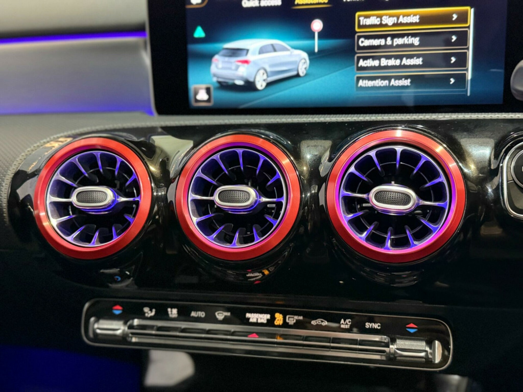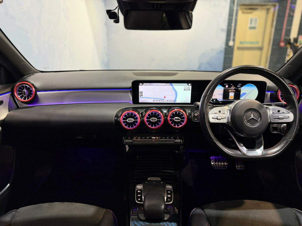 This 2019 Mercedes Benz A Class A220 AMG Line (Premium Plus) boasts exceptionally low mileage for its age, having covered just 26,500 miles. Powered by a 2.0 litre petrol engine and meeting Euro 6 emissions standards, this model offers a compelling blend of performance and efficiency. It comes equipped with the desirable Premium Plus Package, featuring LED headlights, keyless entry, an opening panoramic sunroof, and heated front seats with memory function. Parking is made simpler with front and rear parking sensors, complemented by a 180 degree reversing camera with parking guidelines.The Advanced Connectivity Package ensures you stay connected on the go, with Android Auto, Apple CarPlay, and wireless phone charging readily available. Navigation is seamless thanks to the Advanced Navigation Package, and the dual Bluetooth interface with two USB Type C ports offers convenient connectivity options. This A Class also impresses with its large boot space, providing ample room for your luggage or shopping. Its acceleration is noteworthy, achieving 0 to 62 miles per hour in just 6.9 seconds, demonstrating a spirited performance that sets it apart from many similar vehicles. vanced connectivity package, artico leather-dinamica microfibre - black with red contrast stitching, advanced navigation package, 18in alloy wheels - amg 5-twin-spoke design - painted in titanium grey with a high sheen finish, abs - anti-lock braking system with bas - brake assist, amg bodystyling - front and rear apron and side skirts, attention assist, active bonnet - pedestrian safety measure which detects an impact and raises bonnet by 65mm, active brake assist, active lane keeping assist, adaptive brake assist with hold function and hill start assist, adaptive brake lights, air conditioning - thermotronic luxury automatic climate control - two-zone with display, air vents with surround and cruciform nozzle in silver chrome, airbag - kneebag for driver, airbags - dual stage - driver and front passenger, airbags - head and sidebags - driver and front passenger, airbags - windowbags for driver and front passenger, airpanel - active radiator shutters open for cooling air and close when not needed to improve aerodynamics and fuel efficiency, alarm system with immobiliser and interior protection - thatcham category 1, automatic child seat recognition sensor, beltline strips - chrome, bodystyling - side skirts - body-coloured, brake calipers - mercedes-benz lettering on front, brake-pad wear warning indicator, brushed stainless steel sports pedals with rubber studs, bumpers - body coloured, centre armrest - front with stowage, childproof locks - manually operated for rear doors and electrically operated for rear power windows, chrome weather strip, crash-responsive emergency lighting, cruise control with limiter, cup holder - double - front, dab digital radio tuner, diamond radiator grille with pins in chrome - silver-painted louvre and insert in chrome, direct steer speed-sensitive power steering, door handles - body coloured with a chrome accent, door mirrors - electrically adjustable and heated with integrated led indicators, dual bluetooth interface - 2 usb ports - type c, dynamic select with a choice of driving modes - eco-comfort-sport and individual, esp - electronic stability programme with asr - acceleration skid control, esp curve dynamic assist, electric parking brake, electric windows - 4, exhaust system - twin trapezoidal tailpipes in polished stainless steel, first aid kit and warning triangle, floor mats - red stitched edging - amg lettering, footwell lights in front, front door sills with mercedes-benz lettering, glass - rear windscreen - heated with timer control, glove compartment - illuminated, hard-disk navigation, headlamp assist - automatic headlamp activation, hey mercedes - voice activation, high level third brake light - led, isofix and top-tether child seat fixing points in rear - two outer seats, instrument cluster - fluid level warning indicator for fuel - oil - coolant and washer fluid, instrument cluster - outside temperature display, instrument cluster - service indicator assyst, instrument cluster - trip computer in multi-function display with current fuel consumption indicator, interior lighting - cup holder - stowage compartment lighting, interior lighting - handle recess - closing handle - front-rear-left-right, interior lighting - oddments tray, interior lighting - reading lamp in rear in support plate - rear-left-right, interior lighting - reading lamps - front-left-right - console downlighter, interior lighting - signal exit lamp - front-left-right, interior lighting - signal and ambient lamp, interior lighting - touchpad, interior lighting - vanity lights - front-left-right, keyless-go starting function, led high performance headlamps with integrated led daytime running lights, led tail lights, light failure indicator, live traffic information, luggage compartment cover, mbux multimedia system, mercedes me connect - standard services, pre-installation for mercedes-benz link, premium plus package, radio aerial roof spoiler, rain-sensing windscreen wipers with two sensitivity settings, rear fog light, rear windscreen wiper, remote central locking and crash sensor with emergency opening function, reversing camera with parking guidelines - 180 degree view, roof lining - black, seat belts - black, seat belts - rear three-point - 3, seat belts reminder - front and rear, seat comfort package, seat occupancy sensor - front passenger seat, seats - front cushion length adjustment, seats - front manually adjustable, seats - rear seat backrests - split folding 1-3 - 2-3, speed limit assist, sports seats with integrated head restraints, steering column - manually adjustable for height and reach, steering wheel - 3-spoke multifunction sports in nappa leather with flattened bottom section and perforated grip area, suspension - lowered comfort suspension, tirefit tyre-sealant kit, touchpad on centre cons