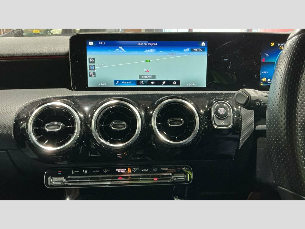 Prestige Car Supermarket in York presents this 2021 Mercedes-Benz A220d AMG Line Executive Saloon, finished in Cosmos Black with black Artico leather and Dinamica microfibre upholstery featuring red contrast stitching, delivering a refined yet sporty compact executive experience. Powered by a 190 ps 2.0 diesel engine paired with the smooth 8G-DCT automatic transmission, this A-Class offers strong performance supported by Dynamic Select drive modes and a multi-link rear axle for enhanced handling and comfort. The AMG Line styling brings assertive front and rear aprons, 18in AMG five twin spoke alloy wheels, chrome exterior detailing and twin visible exhaust trim elements, complemented by LED High Performance headlamps and LED tail lights. Inside, the cabin centres around the MBUX multimedia system with 10.25in touchscreen media display and digital instrument cluster, hard disk navigation, live traffic information, smartphone integration and Hey Mercedes voice activation. Comfort is enhanced by heated front sports seats, THERMOTRONIC two zone climate control and the seat comfort package. Driver assistance features include active brake assist, active lane keeping assist, cruise control with limiter, speed limit assist, reversing camera with 180 degree view and the parking package, making this A220d a highly specified and desirable AMG Line saloon. Artico Leather-Dinamica Microfibre - Bla, Cosmos Black, 18in Alloy Wheels - AMG 5-Twin-Spoke Des, ABS - Anti-Lock Braking System with BAS , AMG Bodystyling - Front and Rear Apron, ATTENTION Assist, Active Bonnet - Pedestrian Safety Measur, Active Brake ASSIST, Active Lane Keeping Assist, Adaptive Brake Assist with Hold Function, Adaptive Brake Lights, Air Conditioning - THERMOTRONIC Luxury A, Air Vents - Black with Silver Chrome Ele, Airbag - Kneebag for Driver, Airbags - Dual Stage - Driver and Front , Airbags - Windowbags for Driver and Fron, Alarm System with Immobiliser and Interi, Automatic Child Seat Recognition Sensor, Beltline Strips - Chrome, Bodystyling - Side Skirts - Body-Coloure