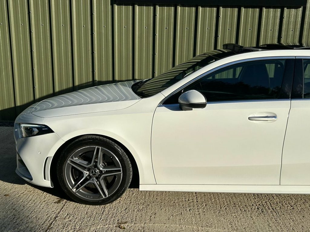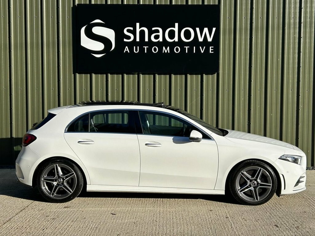 Shadow Automotive are pleased to offer this superb example of the Mercedes-Benz A250 AMG Line Premium Plus Hatchback, presented in excellent condition throughout and maintained to an exceptional standard. The Premium Plus specification elevates this model far above standard examples, featuring heated electrically adjustable front seats with memory function, a panoramic glass roof, premium surround sound system, and Mercedes' impressive Widescreen Cockpit with full-width digital instrument display and touchscreen infotainment.  This car has covered just 43,000 miles and boasts a full maintenance history comprising six services in total — four carried out by Mercedes-Benz main dealers and two by independent specialists. The most recent was a B Service completed in April 2025 at 43,150 miles.  Prepared to Shadow Automotive's usual high standards, the car has just undergone a comprehensive pre-sales inspection and full MOT test, confirming its outstanding mechanical and cosmetic condition.  Finished in Polar White, the car presents beautifully with AMG Line styling and sits on undamaged Bridgestone Potenza tyres all round, each with 5–6 mm of tread.  Inside you will find arguably one of the finest interiors available in a premium hatchback — sporty in design and packed with useful features. The sports seats are trimmed in Black leather and Alcantara with red contrast stitching, complemented by heated front seat functionality, ambient lighting and high- 18in Alloy Wheels - AMG 5-Twin-Spoke Des, ABS - Anti-Lock Braking System with BAS , Active Bonnet - Pedestrian Safety Measur, Active Brake ASSIST, Active Lane Keeping Assist, Adaptive Brake Assist with Hold Function, Adaptive Brake Lights, Air Conditioning - THERMOTRONIC Luxury A, Air Vents with Surround and Cruciform No, Airbag - Kneebag for Driver, Airbags - Dual Stage - Driver and Front , Airbags - Head and Sidebags - Driver and, Airbags - Windowbags for Driver and Fron, Airpanel - Active Radiator Shutters Open, Alarm System with Immobiliser and Interi, AMG Bodystyling - Front and Rear Apron a, ATTENTION Assist, Automatic Child Seat Recognition Sensor, Beltline Strips - Chrome, Bodystylin