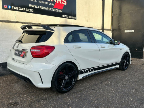 FAB CARS LTD take great pleasure in presenting this stunning Mercedes-Benz A Class 2.0 A250 Blue Efficiency Engineered by AMG 7G-DCT Euro 6 (s/s) 5dr, Has a 2.0L Turbocharged Inline-4, outputs 208 bhp, The A250 Engineered by AMG A-Class boasts an aggressive and sporty aesthetic, AMG Styling Pack includes: Deeper front bumper with larger air intakes, Rear diffuser, Twin exhaust pipes, Side skirts, AMG 18-inch alloy wheels, Carbon fibre Spoiler, Diffuser, wing mirrors, Sharp, swept-back headlights with LED running lights, with Low-slung, wide stance gives it a poised, performance-focused look, it has great Sports seats with part leather/Alcantara upholstery, Red seat belts, Flat-bottomed AMG steering wheel, Brushed aluminium trim and red contrast stitching, Command infotainment system, Bluetooth connectivity, USB and Aux-in, Sat nav, reversing camera, Car Play, Pan Roof, Drive Feel: Sharp steering & agile handling, Sport suspension is firm—enhances road holding well, this is a compelling choice for buyers wanting a stylish, sporty, and relatively fast premium hatchback. Just serviced new disc & pads brembo, well looked after serviced yearly, great representation of a A250 AMG, STANDOUT RARE CAR. FREE 3 months nationwide warranty covering electrical & mechanical parts + VAT + Labour. *Option to extended warranty to 12, 24, 36 months. *We can offer a nationwide delivery. Bespoke finance packages available HPI Clear, V5 & all relevant car docs. This lovely car looks & drives superb. At FAB CARS LTD we dont just sell cars, we do everything possible to get you on the road with your perfect vehicle. Check our great reviews. All cars Prepped to a high standard, *Most cars can be driven away the same day. We pride ourselves on our fantastic 5-star reputation, repeat business & referrals from many happy customers. All Payment methods accepted. Independent mechanical inspection welcome. test drive with a no pressure relaxed environment. P/X considered. Viewing Appointment only. Please call for more information, or to arrange an appointment on 01702568190