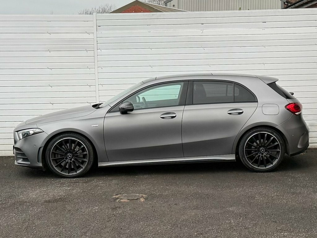 Here we have an exceptional 2021 Mercedes-Benz A-Class 2.0 A250 Exclusive Edition Plus Hatchback, in Magno grey. Mercedes-Benz "Magno" grey is a premium matte or satin finish paint option, often branded as Designo or Manufaktur (e.g., Selenite Grey Magno, Monza Grey Magno), known for its distinctive shark-skin-like sheen. It is a popular, high-cost option for AMG models that provides a durable, aggressive look. This A Class offers outstanding performance, luxury and cutting-edge technology. This vehicle comes with a full Mercedes-Benz service history, was last serviced on 02/02/2026, has been very well looked after, is lovely and clean inside and out, and drives superbly. Powered by the impressive 2.0-litre petrol engine producing 224 ps and paired with the smooth 7G-DCT automatic gearbox, this A250 delivers strong performance while remaining refined and Euro 6 compliant. Finished in striking Magno matte paint, it is further enhanced by the Black Pack, 19-inch gloss black alloy wheels, LED headlights, and a stunning panoramic sunroof, giving the car a real premium and sporty presence. The interior is beautifully appointed, featuring electric memory heated front seats, AMG half leather / half Alcantara sport seats, and a flat-bottom AMG multifunction steering wheel with gearshift paddles. Technology is at the heart of the cabin with the widescreen virtual cockpit multimedia system, satellite navigation, DAB digital radio, Bluetooth telephone and audio, and Ap Artico Leather-Dinamica Microfibre - Bla, Mountain Grey, 19in Alloy Wheels - AMG Cross Spoke Pain, ABS - Anti-Lock Braking System with BAS , ATTENTION Assist, Active Bonnet - Pedestrian Safety Measur, Active Brake ASSIST, Active Lane Keeping Assist, Adaptive Brake Assist with Hold Function, Adaptive Brake Lights, Air Conditioning - THERMOTRONIC Luxury A, Air Vents - Black with Silver Chrome Ele, Airbag - Kneebag for Driver, Airbags - Dual Stage - Driver and Front , Airbags - Windowbags for Driver and Fron, Alarm System with Immobiliser and Interi, Automatic Child Seat Recognition Sensor, Bodystyling - Side Skirts - Body-Coloure, Brake Calipers - Mercedes-Benz Lettering, Brake-Pad Wear Warnin