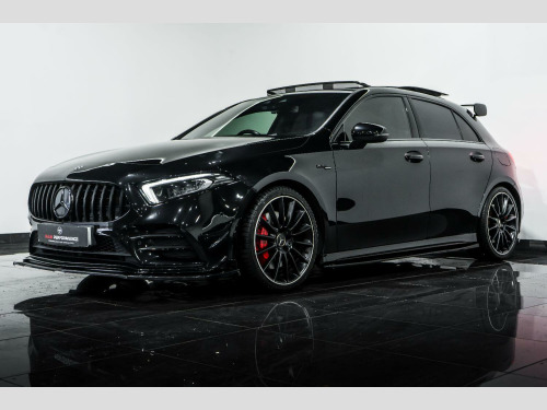 2020 Mercedes-Benz A35 AMG Premium plus finished in Black with contrasting Black Leather AMG Seats. This car comes with: Full Service History, AMG Aero Kit, Panoramic Sliding Sunroof, 10.25 Wide screen Digital Cockpit, Upgraded Burmester Sound System, Suspension with Adaptive Damping system, 19 inch Upgraded Multi-spoke Alloys, Maxton Design Kit, Keyless Start/Stop, Reverse Camera, Front and Rear Parking Sensors, LED headlights, LED tail lights, Cruise Control with a variable speed limiter, automatic two zone climate control, Satellite navigation, Multi Functional Flat bottom Steering wheel plus much more... , This vehicle has a modified Exhaust. , All our vehicles at S A M Performance are HPI Clear. We offer low rates finance packages tailored to suit every individual, subject to terms and conditions. For more information speak to our sales team today on 01706 659966 or to view our stock list go on to our website www.samperformance.co.uk, , Nationwide Delivery Available, , Please note:, All descriptions and specifications are provided in good faith and believed to be correct. However, errors may occur. Buyers are advised to confirm full details- including vehicle history and any previous modifications with our sales team prior to purchase.