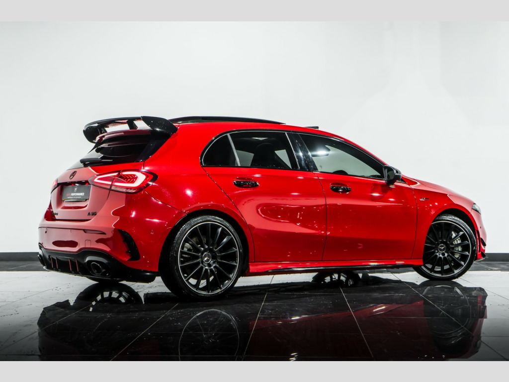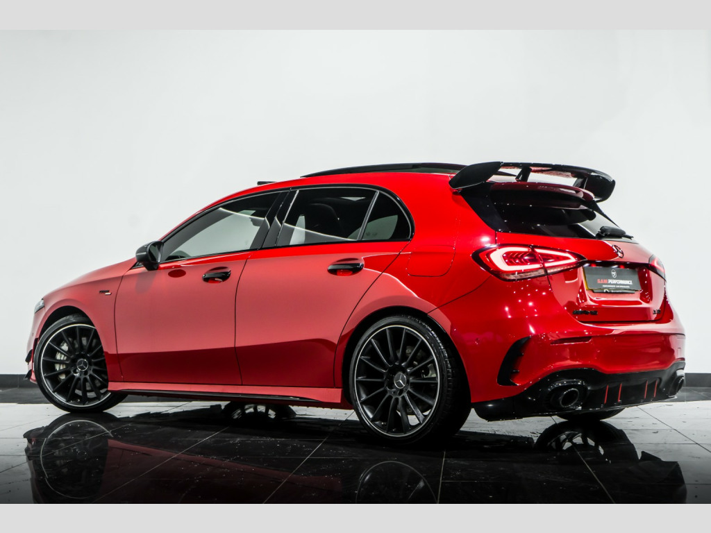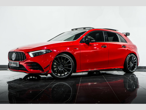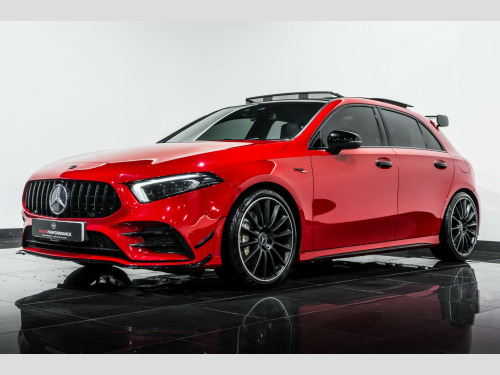 2019 Mercedes-Benz A35 AMG Premium plus finished in Red with contrasting Black Leather AMG Seats. This car comes with: Full Service History, AMG Aero Kit, Panoramic Sliding Sunroof, 10.25 Wide screen Digital Cockpit, Upgraded Burmester Sound System, HUD Head Up Display, 19 inch AMG Multi-spoke Alloys, Night Pack, Keyless Start/Stop, Reverse Camera, Front and Rear Parking Sensors, LED headlights, LED tail lights, Cruise Control with a variable speed limiter, automatic two zone climate control, Satellite navigation, Multi Functional Flat bottom Steering wheel plus much more... , All our vehicles at S A M Performance are HPI Clear. We offer low rates finance packages tailored to suit every individual, subject to terms and conditions. For more information speak to our sales team today on 01706 659966 or to view our stock list go on to our website www.samperformance.co.uk, , Nationwide Delivery Available. , Please note:, All descriptions and specifications are provided in good faith and believed to be correct. However, errors may occur. Buyers are advised to confirm full details- including vehicle history and any previous modifications with our sales team prior to purchase.
