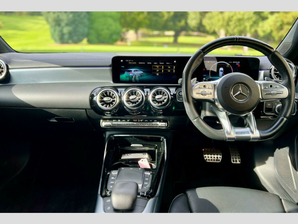 This 2021 Mercedes-Benz A35 AMG Edition boasts an exceptionally low mileage of just 24,500 miles, having been cherished by only one owner. As a Euro 6 compliant model, this four wheel drive A Class is powered by a responsive 2.0L petrol engine, delivering exhilarating performance with a 0-62mph time of only 4.7 seconds. The AMG Edition trim enhances the driving experience with features such as LED High Performance Headlamps, a 7in Instrument Display, and distinctive front door sills bearing AMG lettering. You'll also appreciate the two visible tailpipe trim elements and the 100W Mercedes-Benz Sound System for an immersive audio experience, all complemented by a generous boot space for your everyday needs.The impressive acceleration of this Mercedes-Benz A35 AMG Edition clearly sets it apart from many other vehicles in its class, offering a truly dynamic drive. The combination of its advanced LED lighting, premium sound system, and the practical advantage of its ample boot space further underlines its superiority. This meticulously maintained vehicle represents a superb opportunity to own a high performance, yet practical, premium hatchback., ather - black, 18in alloy wheels - amg 5-twin spoke - aerodynamically optimised - painted in black with high-sheen finish, abs - anti-lock braking system with bas - brake assist, amg bodystyling - amg front apron with front splitter - amg side sill panels and amg rear apron with visible exhaust tailpipe trim elements, amg night package, amg radiator grille with twin blade lamella and amg lettering, amg suspension, attention assist, active bonnet - pedestrian safety measure which detects an impact and raises bonnet by 65mm, active brake assist, active lane keeping assist, adaptive brake assist with hold function and hill start assist, adaptive brake lights, air conditioning - thermotronic luxury automatic climate control - two-zone with display, air vents - black with silver chrome elements, airbag - kneebag for driver, airbags - dual stage - driver and front passenger, airbags - head and sidebags - driver and front passenger, airbags - windowbags for driver and front passenger, alarm system with immobiliser and interior protection - thatcham category 1, automatic child seat recognition sensor, biturbo 4matic lettering on front wings, beltline strips - high gloss black, bodystyling - side skirts - body-coloured, brake calipers - mercedes-benz lettering on front, brake-pad wear warning indicator, brushed stainless steel sports pedals with rubber studs, bumpers - body coloured, car wash mode, centre armrest - front with stowage, childproof locks - manually operated for rear doors and electrically operated for rear power windows, crash-responsive emergency lighting, cruise control with limiter, dab digital radio tuner, direct steer speed-sensitive steering, door handles - body coloured, door mirrors - electrically adjustable and heated with integrated led indicators, dual bluetooth interfaces, dynamic select with a choice of driving modes - comfort-sport-sport plus-slippery and individual, esp - electronic stability programme with asr - acceleration skid control, esp curve dynamic assist, electric parking brake, electric windows - 4, exhaust - two visible tailpipe trim elements, exhaust system - amg sports exhaust system with two round tailpipes attached to the rear apron, exhaust system featuring automatically-controlled exhaust flap, first aid kit and warning triangle, floor mats with stitched edging and amg lettering, front apron with flics as air deflector elements on the outer air intakes, front door sills with amg lettering, front splitter and trim elements on the louvres in the outer air inlets in silver chrome, glass - rear windscreen - heated with timer control, hard-disk navigation, headlamp assist - automatic headlamp activation, heated front seats, hey mercedes - voice activation, high level third brake light - led, isofix and top-tether child seat fixing points in rear - two outer seats, instrument cluster - fluid level warning indicator for fuel - oil - coolant and washer fluid, instrument cluster - outside temperature display, instrument cluster - service indicator assyst, instrument cluster - trip computer in multi-function display with current fuel consumption indicator, instrument display - 7in display, interior 64-colour ambient lighting, interior mirror with reading lamps in black and frameless, keyless-go starting function, led high performance headlamps with integrated led daytime running lights, led tail lamps, leather package, light failure indicator, light and sight package, live traffic information, luggage nets on driver and front passengers backrests, mbux multimedia system, media display - 10.25-inch with touchscreen, mercedes me - remote services, mercedes me connect - standard services, mercedes-benz sound system - 100w, mirror package, owners manual - english, parking package, pre-installation for mercedes-benz link, pre-installation for private car share, privacy glass, radio aerial roof spoiler, rain-sensing windscreen wipers with two sensitivity settings, rear axle - multi-link, rear fog light, rear windscreen wiper, remote central locking and crash sensor with emergency opening function, roof lining - black, seat belts - black, seat belts - rear three-point - 3, seat belts reminder - front and rear, seat comfort package, seat occupancy sensor - front passenger seat, seats - rear seat backrests - split folding 40-20-40, smartphone integration, speed limit assist, spoiler lip on the roof, sports seats with integrated head restraints, steering column - manually adjustable for height and reach, steering wheel - amg performance in nappa leather with silver-coloured aluminium gearshift paddles, stowage compartment in centre console with retractable cover, summer tyres, sun visors with illuminated vanity mirrors, tirefit tyre-sealant kit, touchpad on centre console, trim - light longitudinal-grain aluminium, tyre pressure mon