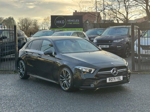 Welcome to HKO Vehicles Lyme Green! We?re delighted to offer this stunning Mercedes-Benz A Class 2.0 A35 AMG Edition (Premium) 4MATIC Auto, a high-performance hatchback delivering thrilling power, premium quality, and standout AMG styling. As an AA Approved Dealer, this vehicle comes with 12 months free AA Breakdown Cover, full service history, a long MOT, 3 months warranty, and finance options available, providing complete peace of mind. This immaculate 2021 (71 plate) A35 has covered just 40,000 miles, has had one owner from new, and is finished in sleek Black. With AMG Premium Pack, 19-inch twin five-spoke AMG alloy wheels, and a superbly presented interior, this is one of the finest examples available. Manufacturer Specification Highlights Engine: 2.0 Petrol Turbo (306ps) Transmission: 7G-DCT Automatic Drive: 4MATIC All-Wheel Drive Emissions Standard: Euro 6 (s/s) Body Style: 5-Door Hatchback Colour: Black Registration: RO71 YSL Mileage: 40,000 miles Owners: 1 Key Features 19-Inch Twin Five-Spoke AMG Alloy Wheels ? stunning appearance, immaculate condition Premium Leather Interior Heated Front Seats ? comfort in all seasons A35 AMG Edition (Premium Pack) ? enhanced tech, styling, & interior features Immaculate Condition ? inside and out Full Service History AMG Performance Styling Large Infotainment Display with MBUX System Satellite Navigation Bluetooth Connectivity & Smartphone Integration Apple CarPlay & Android Auto Reversing Camera Front & Rear Parking Sensors Am 19in Alloy Wheels - AMG 5 Twin Spoke Des, ABS - Anti-Lock Braking System with BAS , AMG Bodystyling - AMG Front Apron with F, AMG Night Package, AMG Radiator Grille with Twin Blade Lame, AMG Suspension, ATTENTION Assist, Active Bonnet - Pedestrian Safety Measur, Active Brake ASSIST, Active Lane Keeping Assist, Adaptive Brake Assist with Hold Function, Adaptive Brake Lights, Air Conditioning - THERMOTRONIC Luxury A, Air Vents - Black with Silver Chrome Ele, Airbag - Kneebag for Driver, Airbags - Dual Stage - Driver and Front , Airbags - Head and Sidebags - Driver and, Airbags - Windowbags for Driver and Fron, Alarm System with Immobiliser and Interi, Automatic Child Seat Recognition Sensor, B